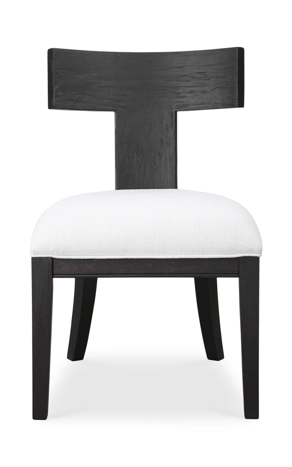 - This Modern Take On A Klismos Chair Features A Curved Wood Frame That Has Been Wire Brushed And Rubbed In A Charcoal Black Stain, Paired With A Stone White Slubbed Performance Fabric Cushion.