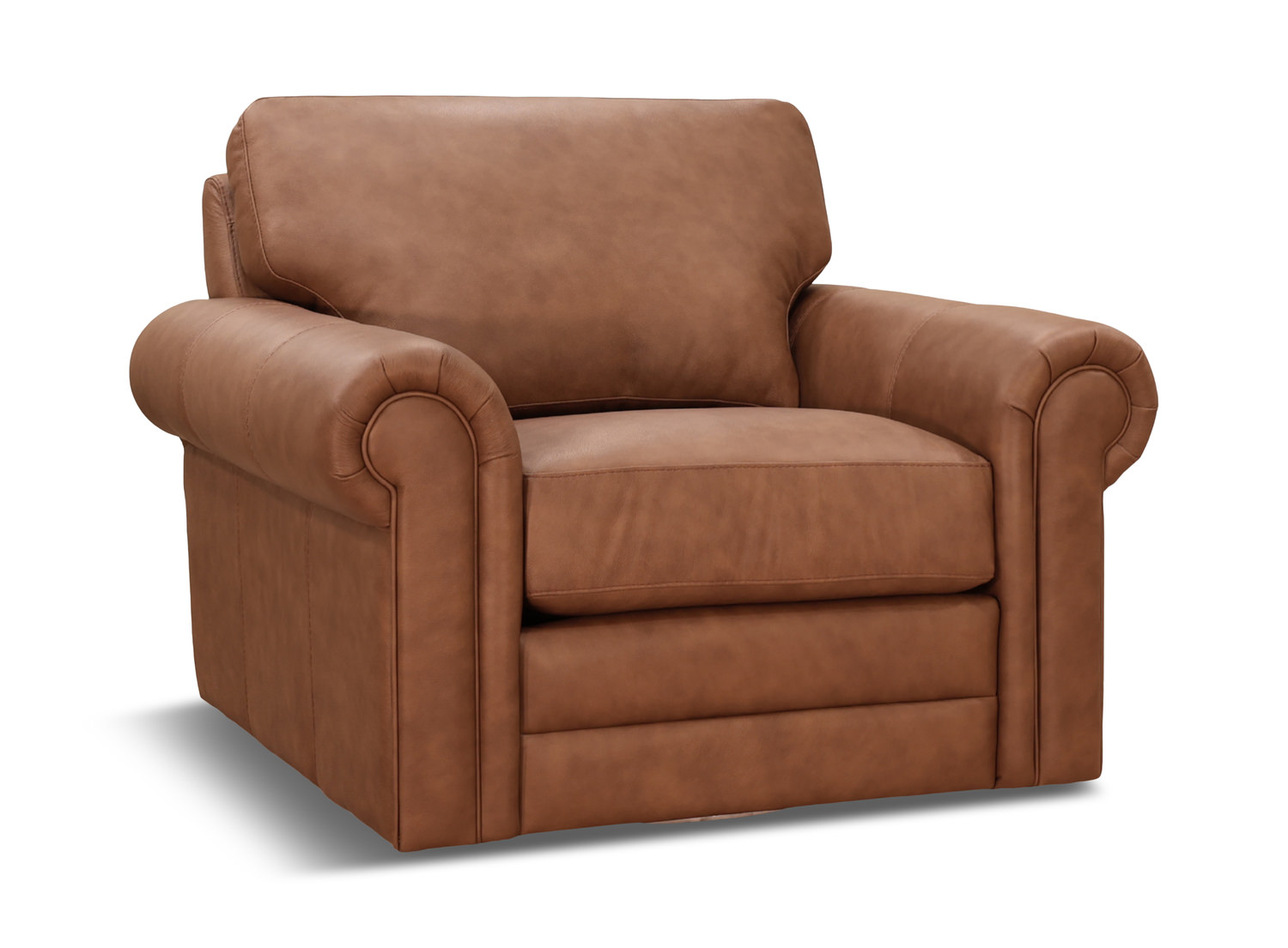 Indulge in the ultimate comfort and sophistication with the Kaden Leather Swivel Chair. Crafted with 2.2 high-density foam and upholstered in luxurious 100% top grain leather, this chair is a true masterpiece of American craftsmanship. The rich cognac color complements the transitional style, making it a versatile addition to any living space. Experience the perfect balance of style and functionality with the Kaden Leather Swivel Chair. Designed by Omnia, a renowned brand for quality furniture, this chair features removable cushions for easy maintenance.