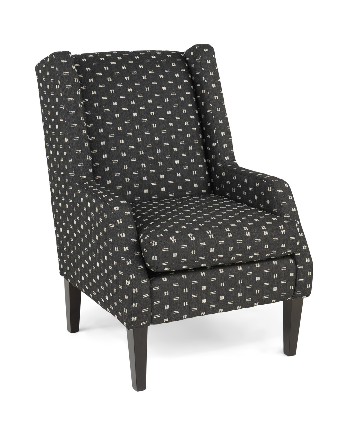 The Whimsey Accent Chair is a sophisticated beauty with a touch of modern design. Featuring clean lines, and a smooth tight back cushion with angled wings and arms that provide stylish seating to your room. Resilient, reversible seat cushion that ensures style does not come at the cost of comfort. Constructed with a durable frame and supportive suspension to ensure longevity for years to come. If you love the frame but would like a different color, stop into any HOM Furniture to pick from hundreds of fabric options. This collection is part of our Green Certified Program the blended polyester fiber seating system utilizes over 2 Million pounds per year of recycled polyester fiber blended in a scientifically monitored ratio with the fiber of complementary properties to create a composite fiber system superior to single fiber systems but with recycling, benefit to boot. Plus, engineered wood is used from renewable sources.