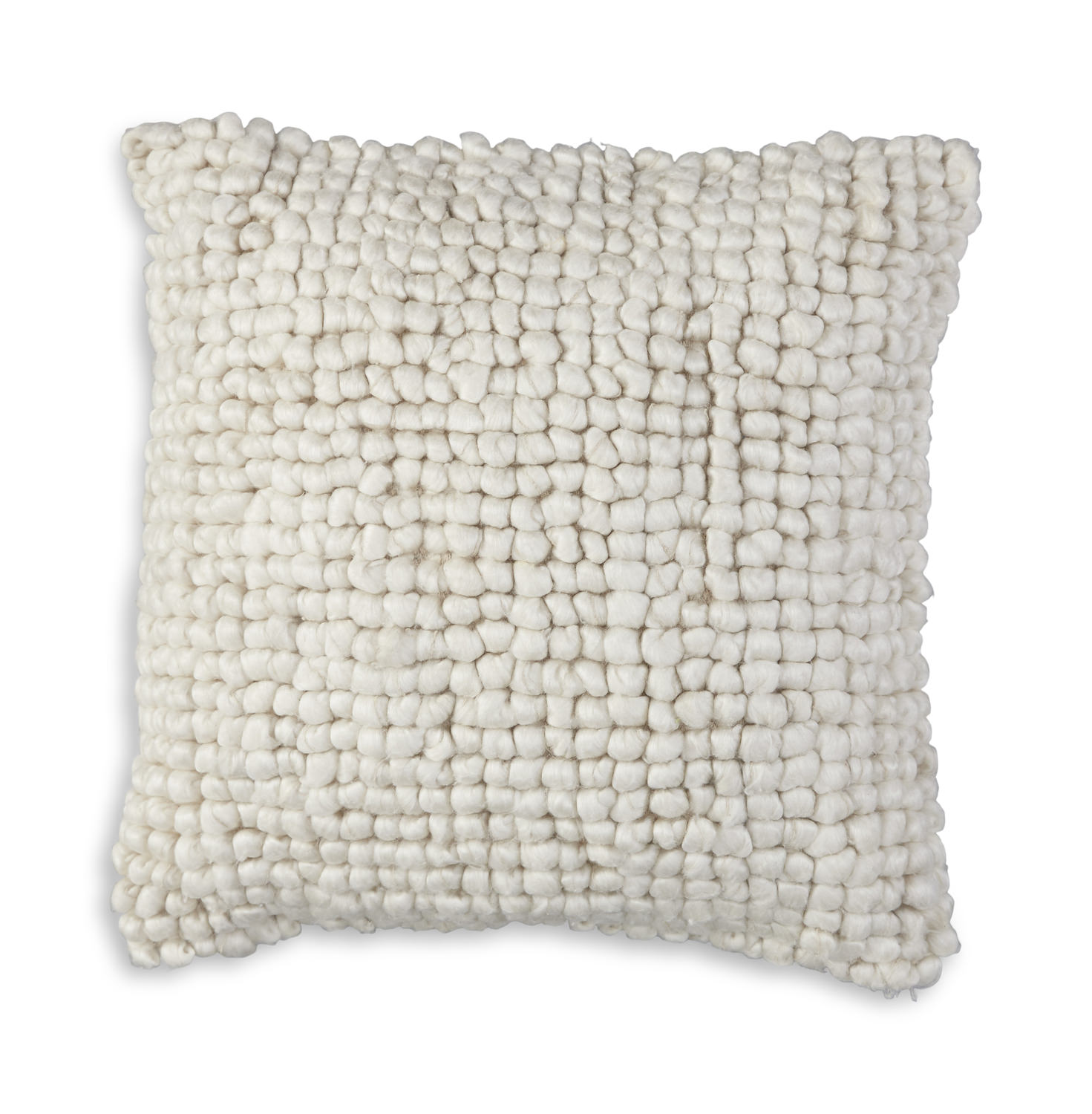 Introducing the Arie Pillow by HOM Furniture, a stylish addition to elevate your home décor. This pillow features a looped design that adds a touch of texture to any space. Made from a luxurious blend of wool, polyester, and cotton, the Arie Pillow is not only soft to the touch but also durable for everyday use. The elegant ivory color complements a variety of interior styles, making it a versatile choice for your living room, bedroom, or any cozy corner in your home. Enhance your space with the timeless charm of the Arie Pillow from HOM Furniture.