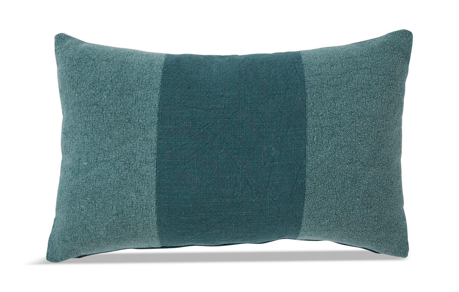 Augusta Pillow is striking, in its stonewashed fabrics and four available colors. Choose a favored hue, and bring out the color in other decorative pieces. The lumbar shape gives it purpose on a sectional or a chaise. It will add to the restful, reading area or give the bedding a great pop of color. Comfortably cotton construction makes this knife-edge pillow a no-brainer. Please note this accent pillow should be spot cleaned only, for best results.