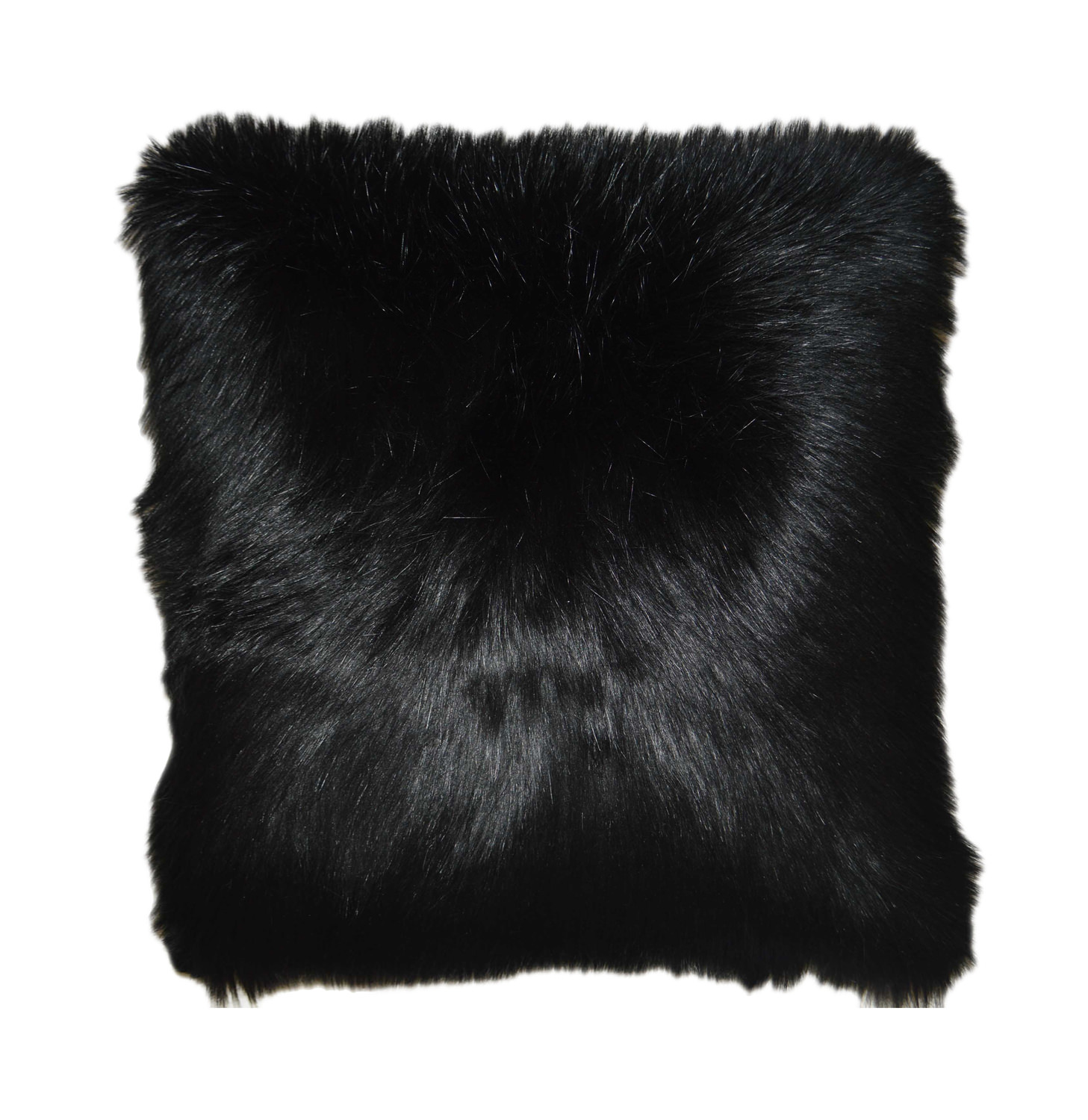 The Faux Fur Fox Pillow features the same fabric front and back. Zipper closure with removable feather/down insert. Measures 20" square.