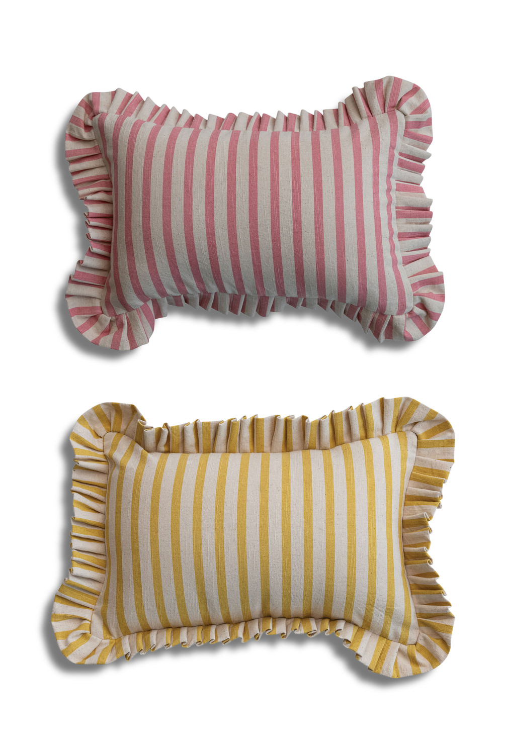 Introducing the Ruffled Lumbar Pillow from HOM Furniture, a charming addition to any young girl's room. This delightful pillow features a playful striped pattern in assorted colors of yellow and pink, adding a touch of fun and whimsy to the space. Made from soft cotton material, this lumbar pillow is not only stylish but also cozy and comfortable. The ruffled flange detail adds a sweet and feminine touch, perfect for creating a cheerful and inviting atmosphere. Whether used as a decorative accent or for extra support, this Ruffled Lumbar Pillow is sure to brighten up any space with its youthful charm. Each is sold separately.
