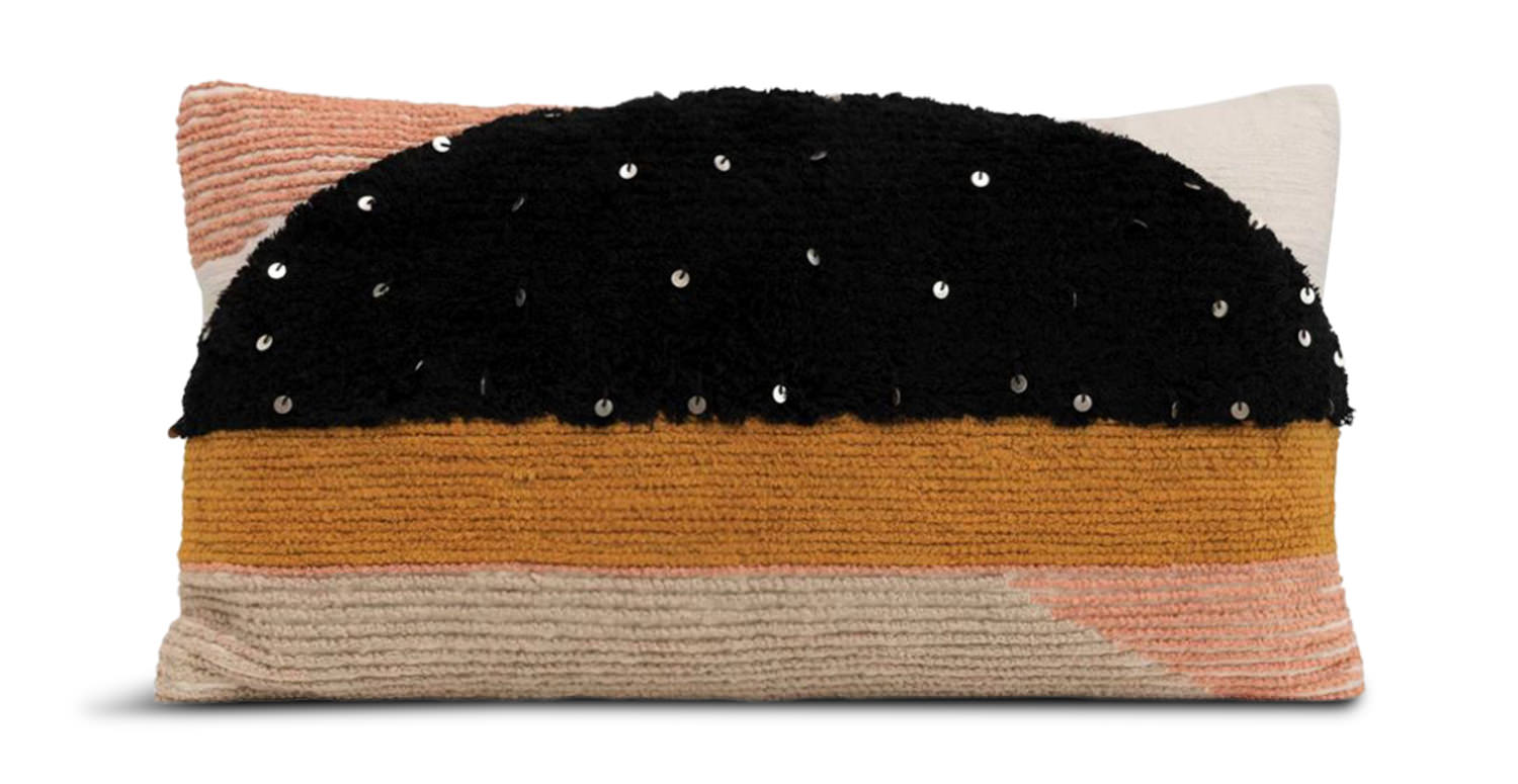 Introducing the Sequins Lumbar Pillow by HOM Furniture, a vibrant and stylish addition to your home décor. This lumbar pillow, adorned with dazzling sequins in shades of orange, black, and a hint of pink, is sure to revitalize any room it graces. Experience a touch of glamour and sophistication with this eye-catching accent piece that will elevate the look of your living space. Add a pop of color and texture to your sofa, bed, or favorite armchair with the Sequins Lumbar Pillow and transform your space into a chic and inviting retreat.