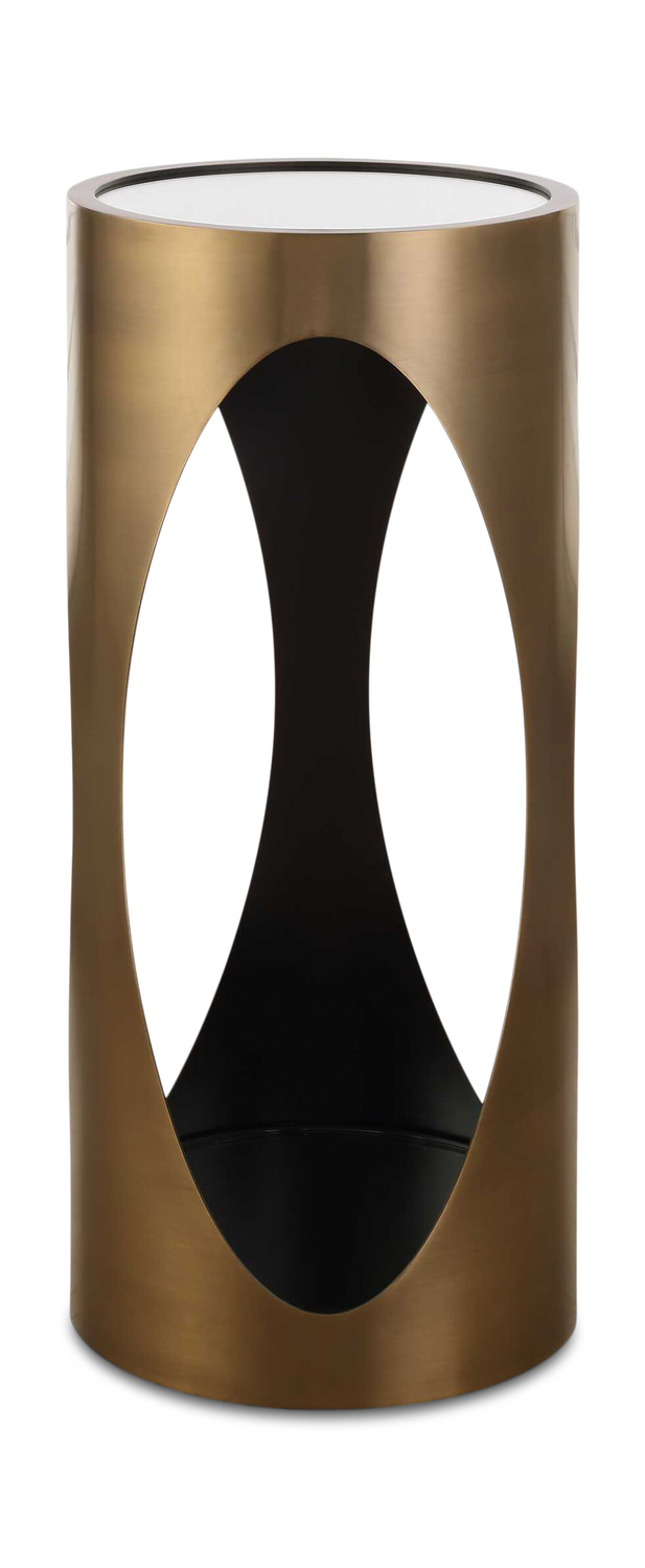 - Achille's Mirrored Top Rests On A Sleek Brushed Brass Cylindrical Base Creating A Perfecting Resting Place For Your Favorite Drink Or Accessory. An Additional Mirror In The Base Adds Sculptural Reflection.