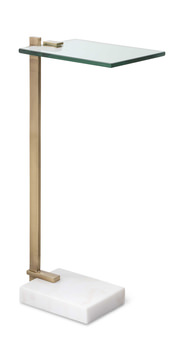 Elegantly staged by a white marble foot, the Butler Accent table features a tempered glass top. A stainless steel constructed base, with a brushed brass plated finish, it is lean and linear, with an updated, geometric overall impression.