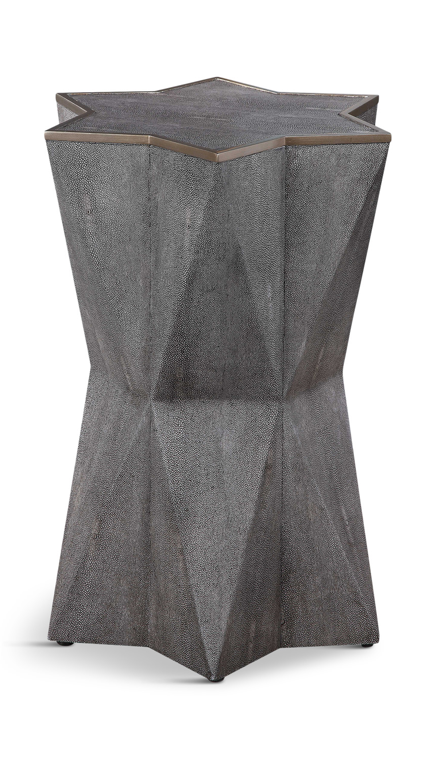 - Unique Star Shaped Accent Table Features A Charcoal Gray Faux Shagreen Wrap, Accented With A Hand Applied Gold Leaf Trim.