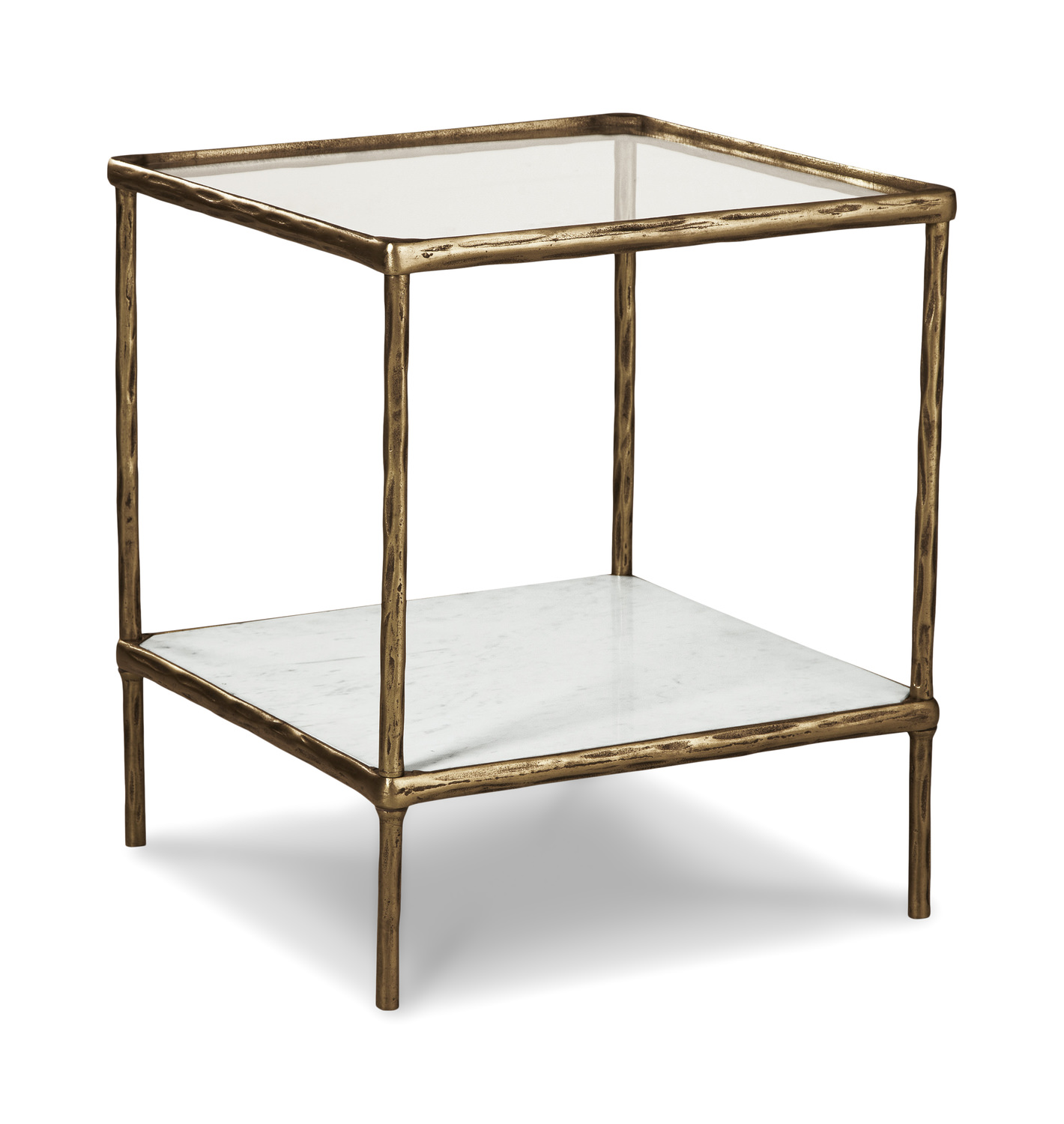 Introducing the exquisite Devon Accent Table from HOM Furniture, a pinnacle of modern elegance and sophistication. This stunning piece exudes luxury with its sleek design and premium materials. Choose between the timeless antique brass or the bold antique black finish to perfectly complement your décor. Crafted with a clear glass top that adds a touch of contemporary flair, this accent table also features a white marble lower shelf for a touch of opulence. The combination of marble and metal materials not only ensures durability but also elevates the overall aesthetic of the piece.