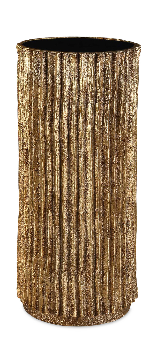 Elevate your space with the striking design of the Echo Brass Drink Table from HOM Furniture. This petite drink table makes a bold statement with its unique waterfall textures, adding a touch of drama to any room. The heavily textured antique gold finish exudes elegance, while the black glass top provides a sleek contrast. Crafted by Uttermost, a renowned brand for quality and sophistication, this accent table showcases impeccable craftsmanship and attention to detail. The brass color brings a touch of luxury and warmth to your decor, creating a sophisticated ambiance in your home.