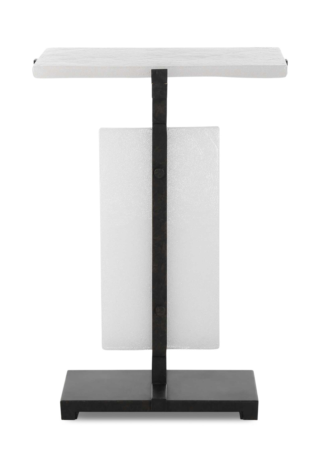 Add a touch of elegance to your living space with the Elements Bubble Glass Accent Table from HOM Furniture. This exquisite end table features a sophisticated aged bronze base that beautifully complements the two stunning slabs of bubble glass. Crafted from tiny air bubbles trapped within the glass, the bubble glass creates a mesmerizing visual effect and allows light to pass through, creating a unique and captivating ambiance in any room. With its sleek design and high-quality craftsmanship, this Uttermost branded accent table is the perfect blend of style and functionality. Elevate your home decor with the Elements Bubble Glass Accent Table and make a statement that is sure to impress.