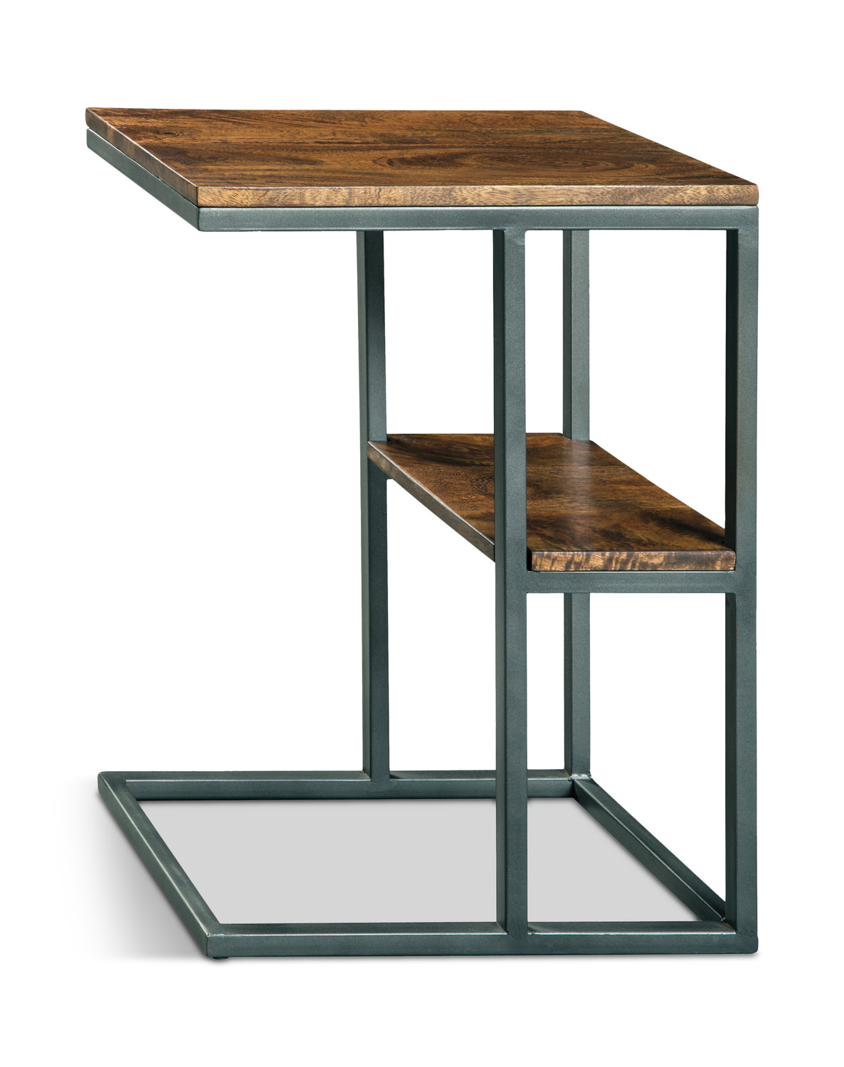 Bring home the Forestmin Accent Table for a added rustic element to your room as well as more functionality. This table is designed with a grey metal tube frame in a c-shape silhouette. On the top of the table is a natural piece of wood with a gloss finish. There is also a small shelf in the center of the table to extra surface space that is also finished in the same piece of wood as the top. Place this table next to your sofa for a movable item that can also slide up next to you so you can place your warm beverage on the table while you are relaxing at the end of your day.