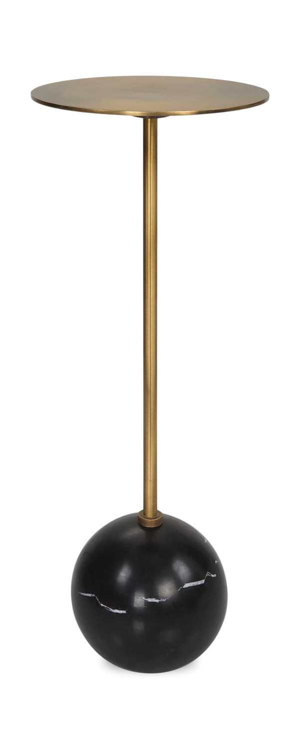 • This Sophisticated Drink Table Goes Wherever The Party Goes. An Elegant Honed Black Marble Foot With Natural White Veining Supports The Solid Brass Top Perfect For Holding A Book Or Drink. Because Of The Natural Characteristics Of Marble, Each Piece Will Have Unique Veining Patterns.