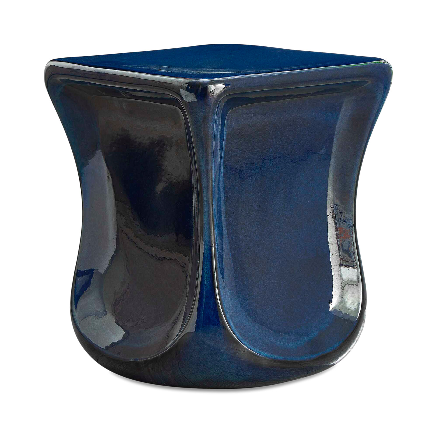 - This Sculptural Stool Made Entirely Of Earthenware Clay Features Dramatic Scooped-in Sides Covered In A Deep, Lustrous Blue Glaze. Due To The Nature Of Fired Glazes On Pottery, Finishes Will Vary Slightly. May Be Used Outdoors, But Protection From Freezing Temperatures Is Recommended.