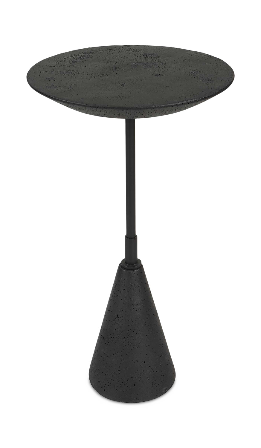 - This Accent Table Makes A Dramatic Statement With Its Sleek, All Black Design. The Slim Steel Rod Is Accented By A Black Man-made Stone Top And Foot With A Noticeably Porous Texture.