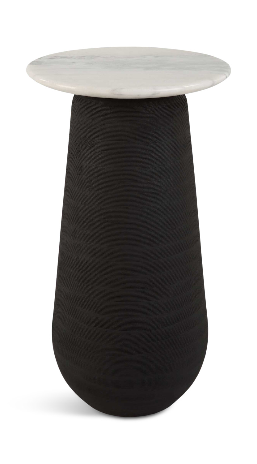 - The Curved Forms Of The Total Eclipse Accent Table Come Together Creating Juxtaposed Textures Of Polished White Marble And Hand Etched Porcelain In Matte Black. Because Of The Natural Characteristics Of Marble, Each Piece Will Have Unique Veining Patterns.