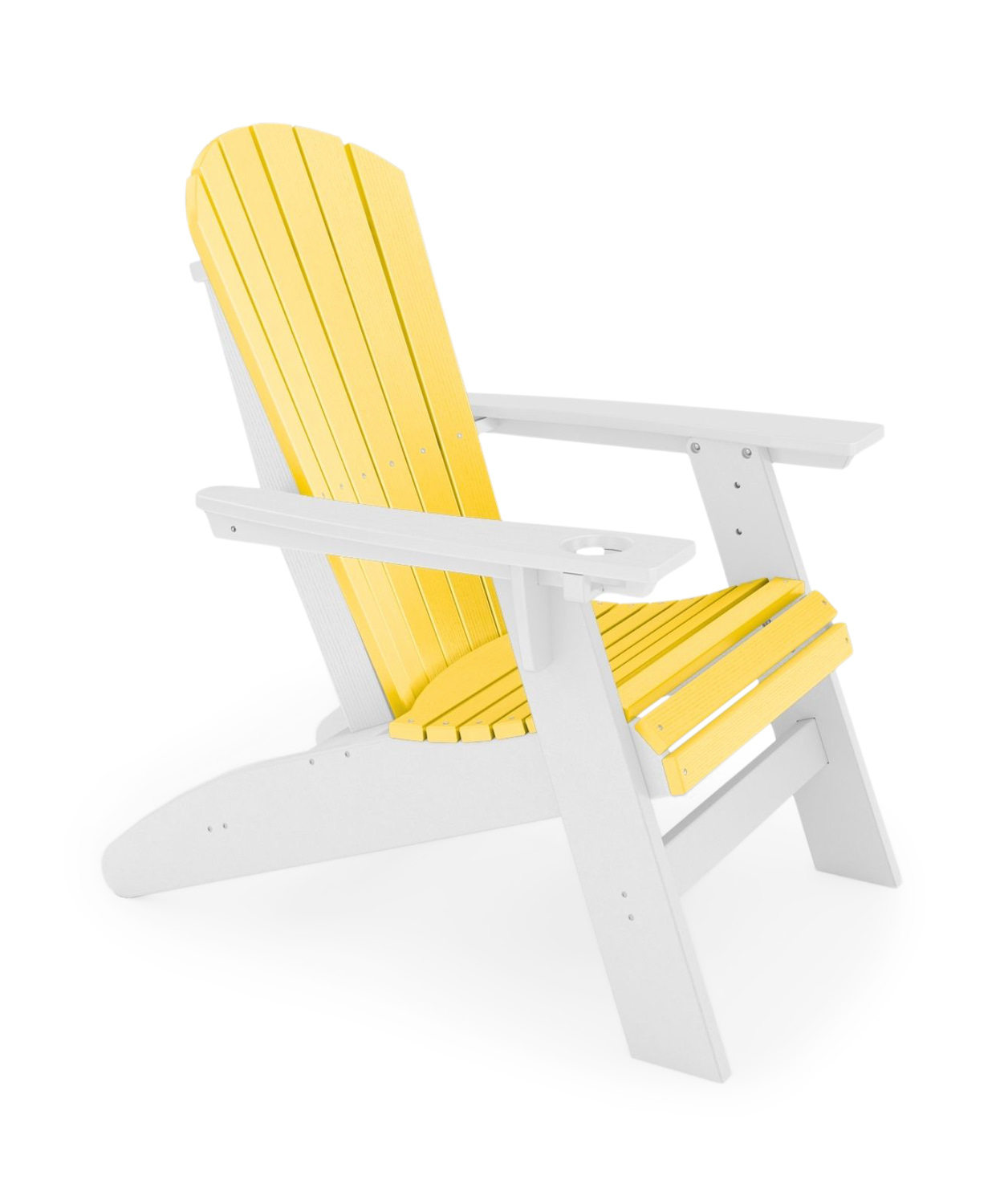 The St. Simons Adirondack Chair by HOM Furniture, a perfect blend of style and durability for your outdoor space. Made in the USA with high-density polyethylene material, this patio chair is not only resistant to fading, rotting, and splintering but also features UV stabilizers to ensure long-lasting quality. Crafted from 100% recycled plastic, this chair is not only eco-friendly but also customizable to suit your preferences, with custom order options available. Get ready to relax in style and comfort with the St. Simons Adirondack Chair, designed for outdoor use and built to withstand the elements. Assembly required.