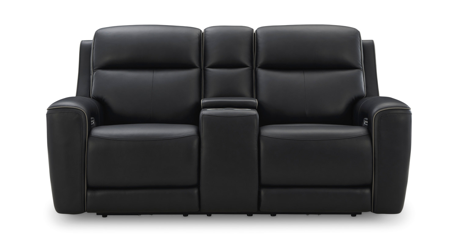 Introducing the Campbell Leather Power Reclining Loveseat with console from HOM Furniture, the perfect blend of comfort and style for your living space. This modern piece features a drop-down table, power headrest, lumbar and heat functions, and a 4-zone massage system for ultimate relaxation. With a heavy-duty recline mechanism, this loveseat offers durability and long-lasting comfort. The taupe leather upholstery adds a touch of sophistication to any room, while the transitional design seamlessly fits into any decor.
