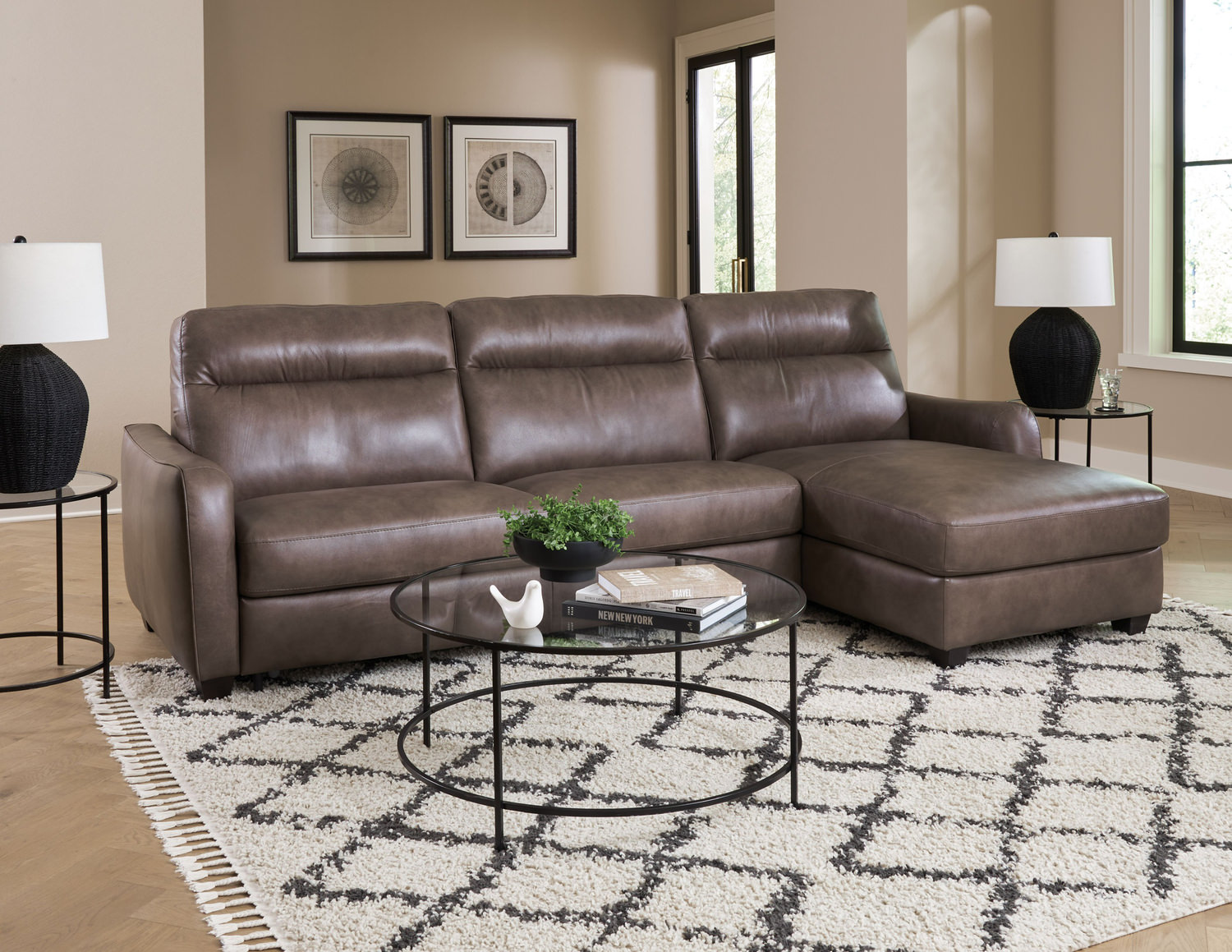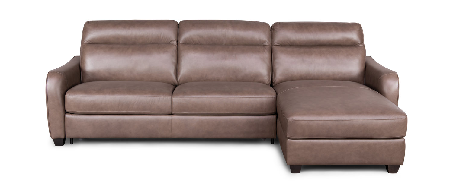 Introducing the Dakota Leather Sofa with Storage Chaise and XL Queen Sleeper by HOM Furniture, where luxury meets functionality. Crafted with a kiln-dried hard wood frame and a heavy-duty sleeper mechanism, this sofa ensures durability and comfort like no other. The chaise can be effortlessly moved to either side, offering versatility in your living space. Sink into the high-resiliency foam cushions and experience ultimate relaxation. The European-style mechanism keeps all the cushions attached when opening the sleeper, ensuring a seamless transition from sofa to bed. The 5" memory foam mattress provides a restful night's sleep for your guests.