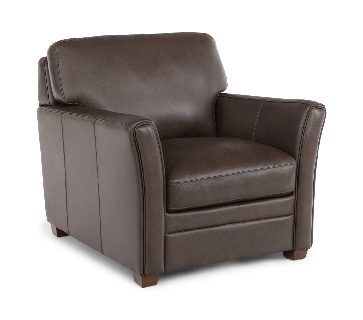 Introducing the Dano Leather Chair by Thomas Cole Designs, a stunning piece that combines elegance and comfort seamlessly. Crafted with top grain leather, this collection offers a luxurious feel and lasting durability. The fully padded engineered hardwood frame ensures stability and support for years to come. Designed with a sleek, modern flared arm, the Dano Leather Collection adds a touch of contemporary style to any living space. Experience the perfect blend of quality craftsmanship and modern aesthetics with the Dano Leather Chair.
