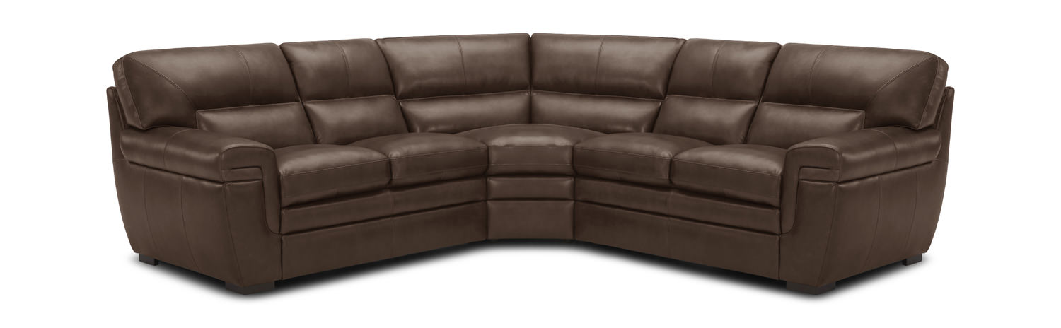 Introducing the Ezra 3 Piece Leather Sectional from HOM Furniture, a luxurious addition to your living space. Crafted with a durable engineered and hardwood frame, this sectional is built to last. The high resiliency foam ensures both comfort and support, while the steel spring suspension provides added durability. Wrapped in 100% genuine leather, this sectional exudes sophistication and elegance. The modern design in a rich brown color complements any decor, adding a touch of luxury to your home. With simple assembly required, this stationary sectional is easy to set up and enjoy.