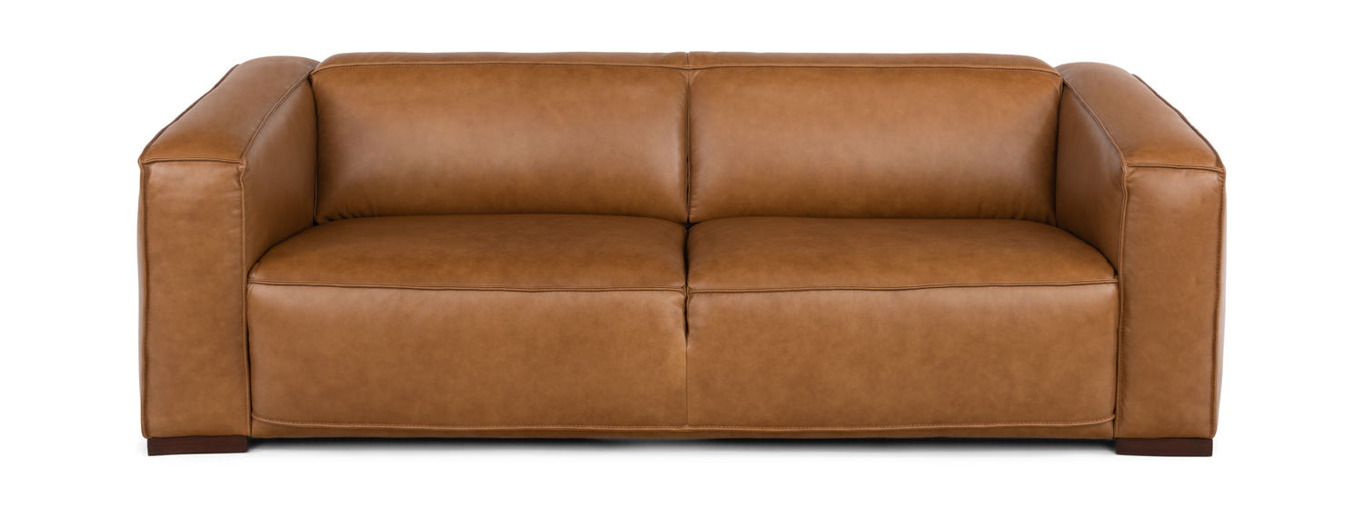 Introducing the Kevin Leather Sofa by Thomas Cole Designs, where luxury and comfort meet. Crafted with utmost precision and care, this sofa is made from 100% genuine leather, ensuring unmatched quality and durability. The Kevin Leather Sofa features an engineered and hardwood frame, providing exceptional stability and strength. You can rest assured that this sofa will be a long-lasting centerpiece in your living space. Designed for maximum comfort, the high-resiliency foam seats of the Kevin Leather Sofa offer superior support and plushness. Sink into the soft cushions and feel the stress of the day melt away as you relax in style.
