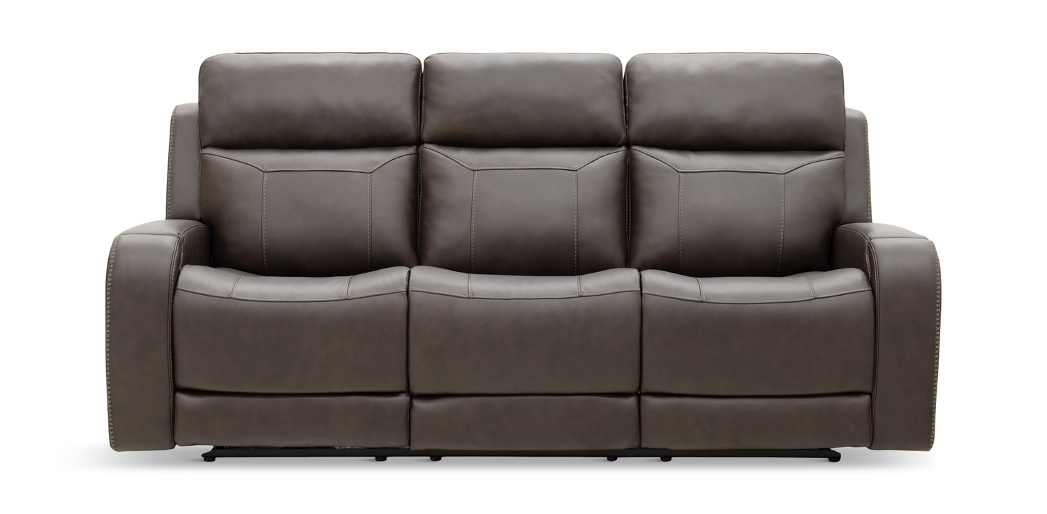 Introducing the Kona Leather Power Reclining Sofa from HOM Furniture, the perfect blend of comfort and style for your living room! Sink into luxurious relaxation with the power headrest and lumbar support, while enjoying an immersive sound system for the ultimate movie night experience. The heat and massage function in the end seats will help you unwind after a long day, while the zero gravity recline feature elevates your comfort to the next level. Crafted in rich brown leather and boasting a traditional yet casual style, this 87" sofa brings a touch of elegance to any space.