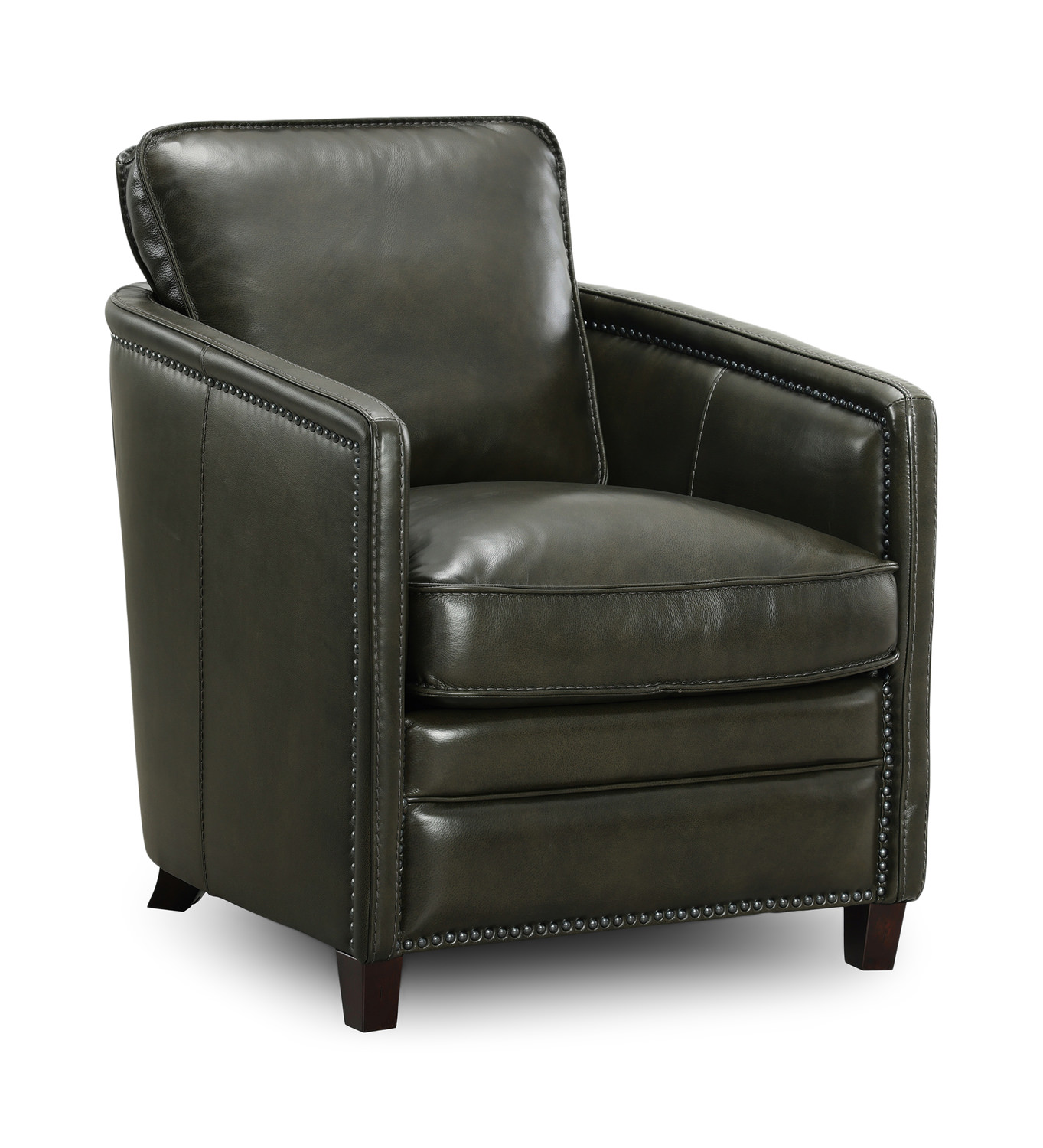 The contemporary style of the Pivot Leather Accent Chair will fit in with any existing decor. Enjoy the luxurious feel of genuine leather. Sloping track arms, detailed stitching, and nail head accents finish off the look. Be inspired by the Pivot Accent Chair.