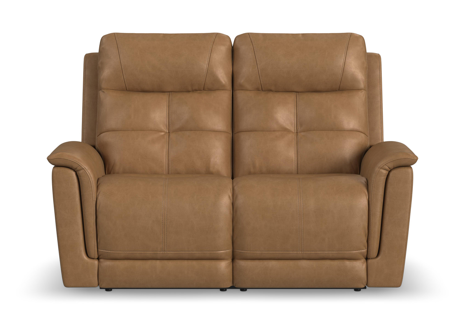 Introducing the Ranger Leather Power Reclining Loveseat by HOM Furniture, where luxury meets comfort in the most exquisite way. This modern piece boasts a sleek design with a touch of transitional elegance, making it a perfect addition to any living space. Sink into cloud-like comfort as you recline back in zero-gravity position, feeling the stress melt away as the heated seating and lumbar support provide a soothing experience. The built-in air massage feature adds an extra layer of relaxation, ensuring you unwind in style. Crafted from premium leather material in a rich brown hue, this loveseat exudes sophistication and class.