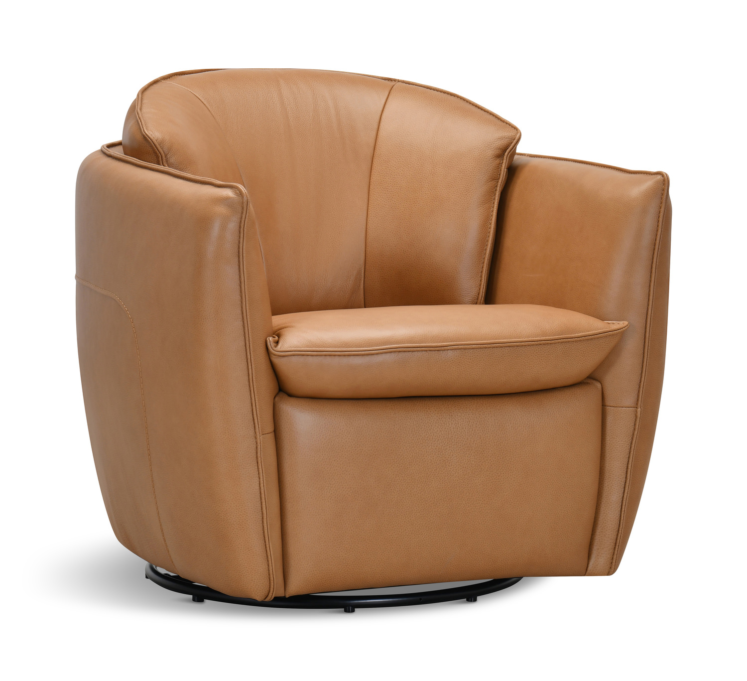 Introducing the Sydney Swivel Chair by Thomas Cole Designs, a masterful blend of luxury and comfort. Crafted from 100% genuine leather, this exquisite barrel chair is designed with high-resiliency foam for unparalleled support. The decorative flange seam adds a touch of elegance, making it a perfect addition to any living space. Available for custom order, the Sydney Swivel Chair is a must-have piece for those who appreciate quality craftsmanship. Experience the ultimate in relaxation and style with this statement piece from Thomas Cole Designs.