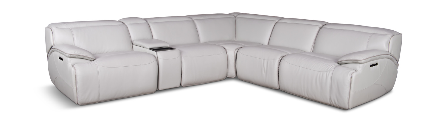 Introducing the Tampa 6 Piece Modular Sectional by HOM Furniture, a true embodiment of luxury and functionality. This sectional features a power recline, allowing you to effortlessly find your perfect lounging position. The adjustable headrest and lumbar support ensure maximum comfort and support for your back and neck. With a lay flat 160-degree recline, you can easily transform this sectional into a cozy sleeping space. Crafted with attention to detail, the contrast leather welt adds a touch of sophistication to the contemporary design. The 2.2 high resiliency foam provides plush seating, while the engineered hardwood frame ensures durability and stability. Equipped with stainless steel cupholders in the console, you can enjoy your favorite beverage without worrying about spills. Stay connected with the wireless charger and USB A & C ports conveniently located in the console. Upgrade your living space with the Tampa sectional for a perfect blend of comfort and modern functionality.