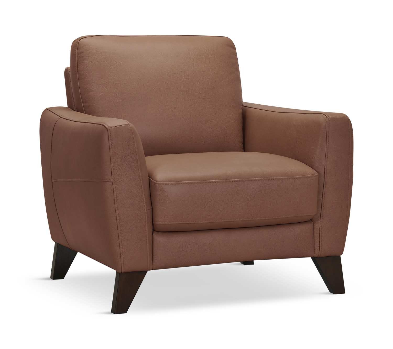 Introducing the Trifle Leather Collection, a masterpiece of comfort and style brought to you by HOM Furniture. Crafted with utmost precision and attention to detail, this leather group is designed to elevate your living space to new heights. Made from 100% top-grain leather where you touch with split grain on the sides and back, the Trifle Leather Chair boasts a luxurious and supple feel that exudes sophistication. Each piece is meticulously handcrafted, ensuring impeccable quality and durability that will withstand the test of time. With custom orders welcome, you have the freedom to personalize the leather in this group to perfectly suit your unique taste and preferences.