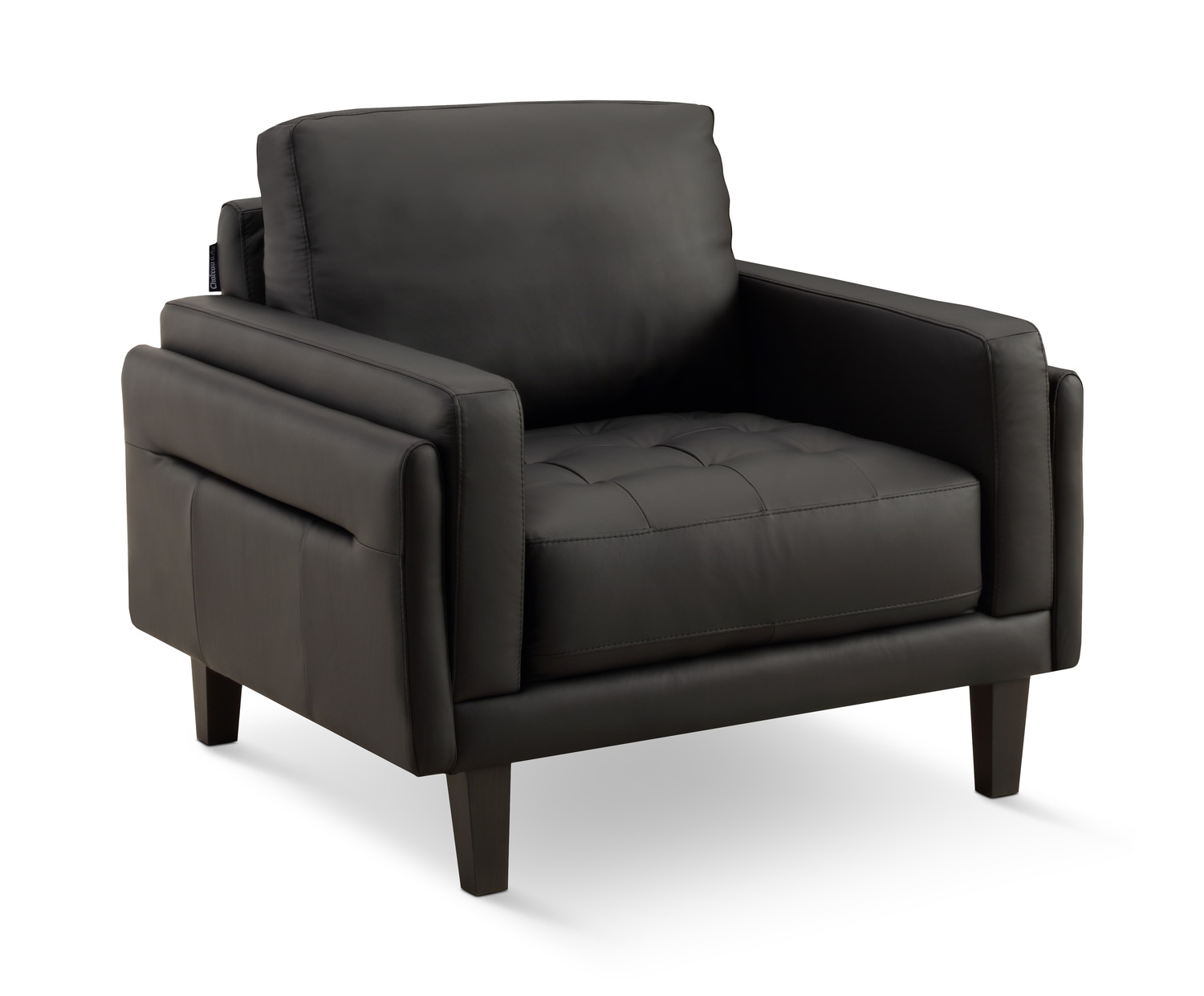 Introducing the Whinny Leather Chair by Thomas Cole Designs, meticulously crafted in Italy with a stunning modern design. This chair features a 100% leather cover in a trending matt black shade, exuding elegance and sophistication. The engineered hardwood frame ensures durability and stability, while the fully padded frame provides ultimate comfort. Special order options allow for customization in other luxurious leathers to suit your style. Sink into the high-resiliency foam cushions for a plush seating experience. Elevate your living space with the Whinny Leather Chair, a perfect blend of quality craftsmanship and contemporary flair.