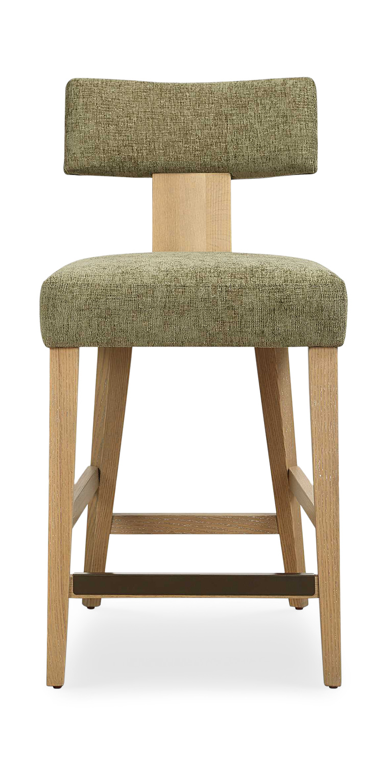 Experience the epitome of timeless elegance with the Elysian Moss Counter Stool from HOM Furniture. This classic Klismos style is elevated with a casual twist, boasting a floating back design for a touch of modern flair. Crafted from solid oak in a natural finish with a dark bronze kickplate, this counter stool exudes sophistication and charm. Upholstered in a finely textured, cleanable polyester fabric in a lush moss green hue, the Elysian Moss Counter Stool not only adds a pop of color to your space but also offers practicality with its toxin-free, eco-friendly treatment.