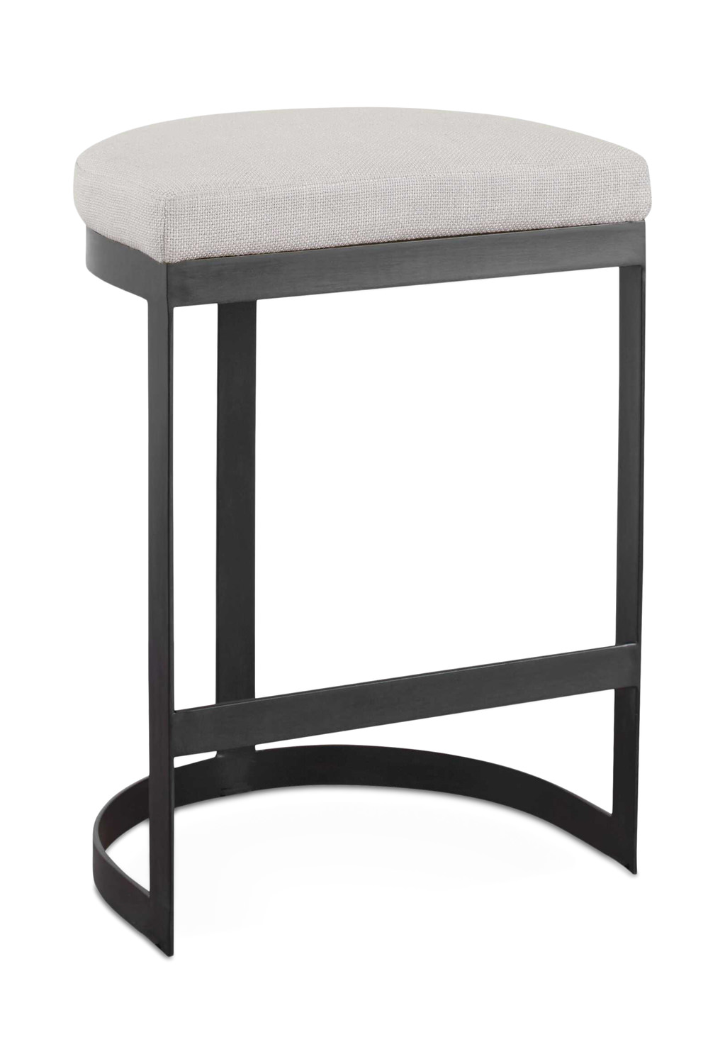 - Simplistic But Sturdy, This Statement Counter Stool Features A Thick Hand Forged Iron Base Finished In Matte Black. Plush Seat Is Tailored In A Beige Linen Blend Fabric With Added Performance Treatment To Resist Soiling And Stains.