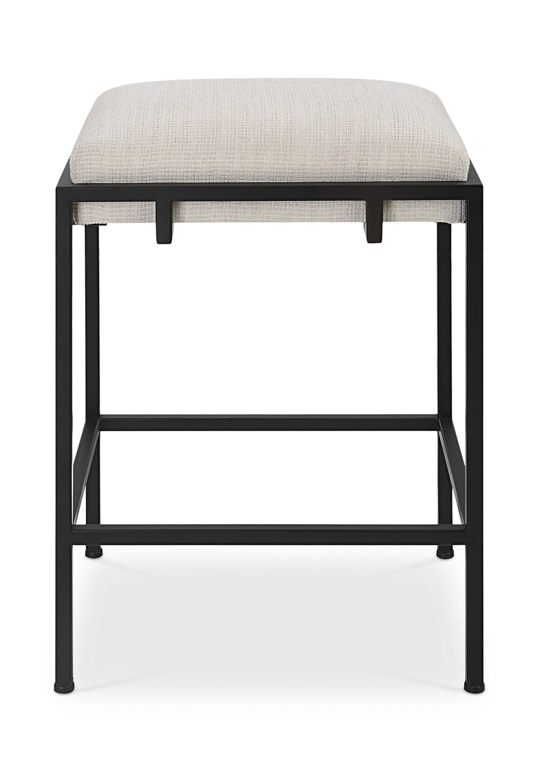 • A Classic And Sophisticated Color Combination, This Counter Stool Features A Sleek Matte Black Iron Frame And Is Paired With A Plush Upholstered Seat In An Off-white Waffle Textured Polyester.