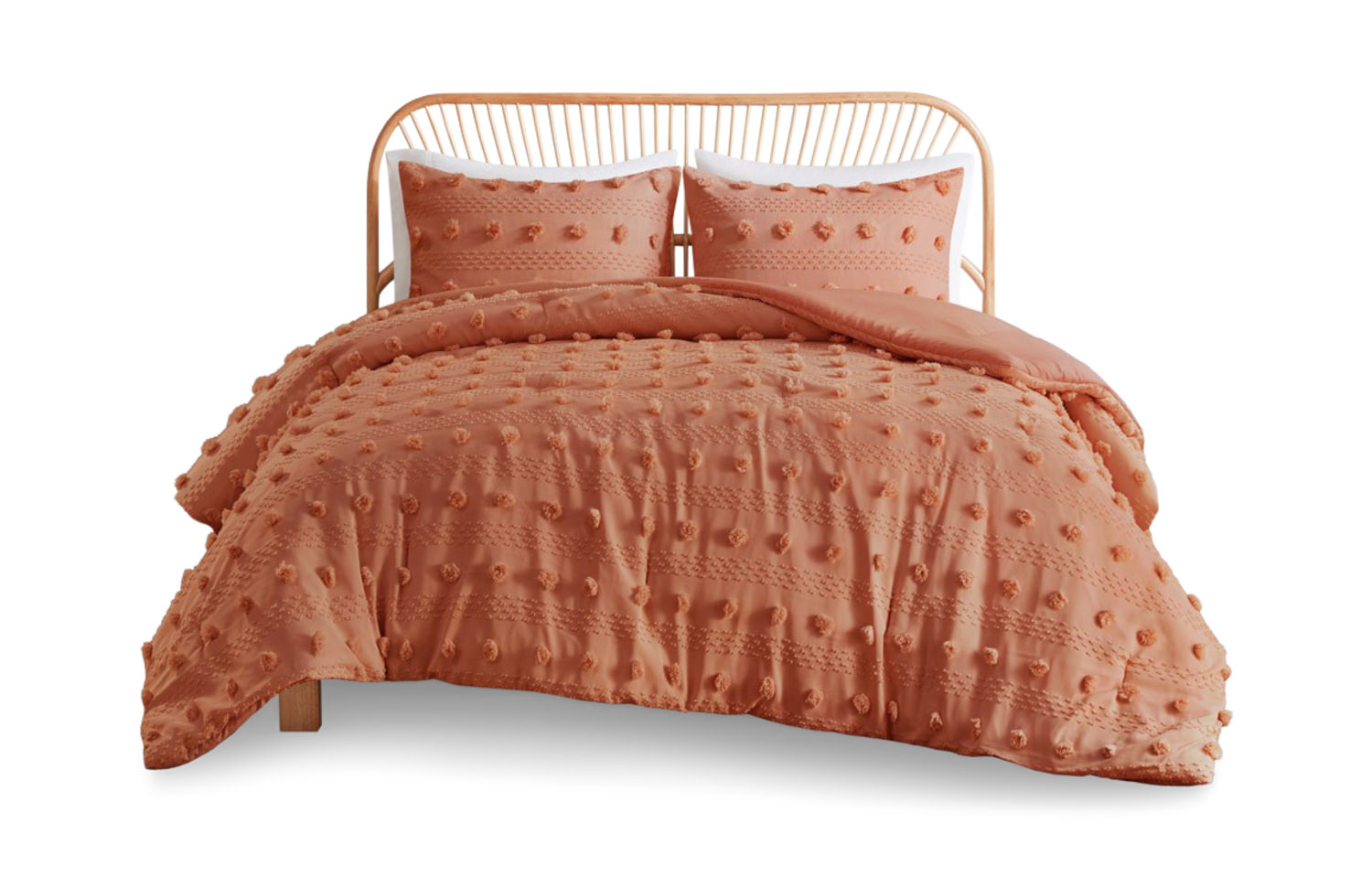 Introducing the HOM Furniture exclusive Lucy Clip Jacquard Rust Bedding Set! Elevate your bedroom with this charming and whimsical comforter that features fun and playful clip jacquard pompoms all over the face. The rust color adds a touch of warmth and coziness to any space, while the design adds dimension for a lovely look. Available in two sizes; twin size includes 1 standard sham and full/queen include 2 standard shams, this hypoallergenic polyester comforter is perfect for those with sensitivities. Plus, the bedding set is machine washable for ease of care, making it both stylish and practical.