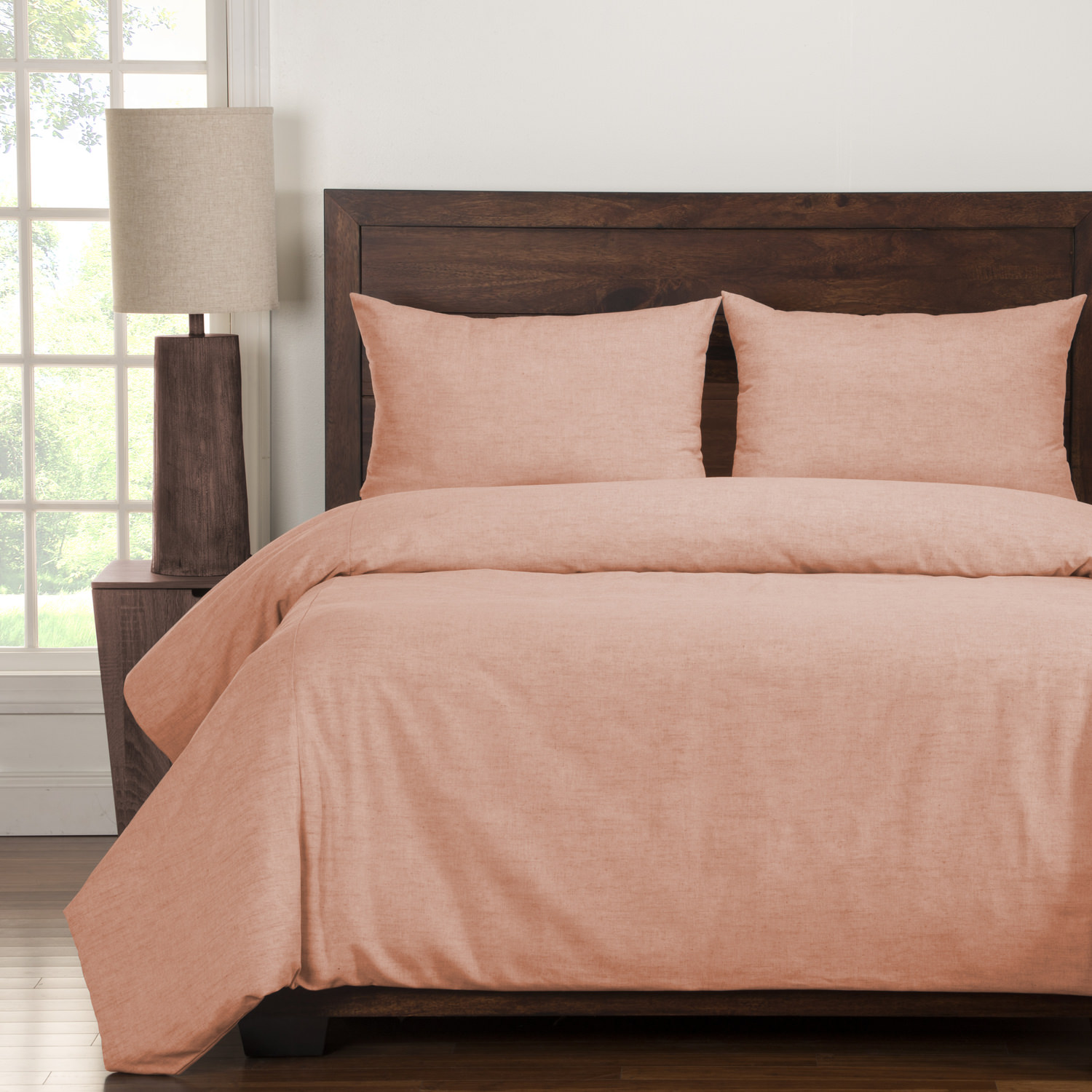 The Pacific Duvet Set has a wonderful linen quality that will look stunning with any decor scheme. The set includes a duvet cover, duvet insert and two bed shams. Constructed with polyester and linen, this set is dry clean only. Use this collection against a streamlined bed frame for a modern look, or on a white washed headboard for a cottage design. Queen set includes a 94" x 98" duvet and comforter insert with two 20" x 30" standard shams. King set includes a 106" x 98" duvet and comforter insert with two 20" x 36" King size shams.