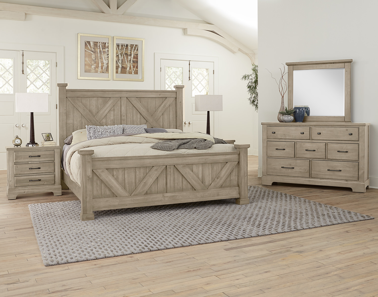 Introducing the Cool Rustic Panel Bedroom Suite by HOM Furniture. Crafted with care in the USA from solid American maple and birch, this sustainable piece epitomizes quality and durability. The classic farmhouse style is enhanced by the beautiful finish, showcasing the natural beauty of maple and birch wood. The mortise and tenon construction ensures a sturdy frame, perfect for a restful night's sleep. Elevate your bedroom with this timeless Panel Bedroom Suite that seamlessly combines elegance and functionality. The suite includes a bed, dresser, mirror, and nightstand.