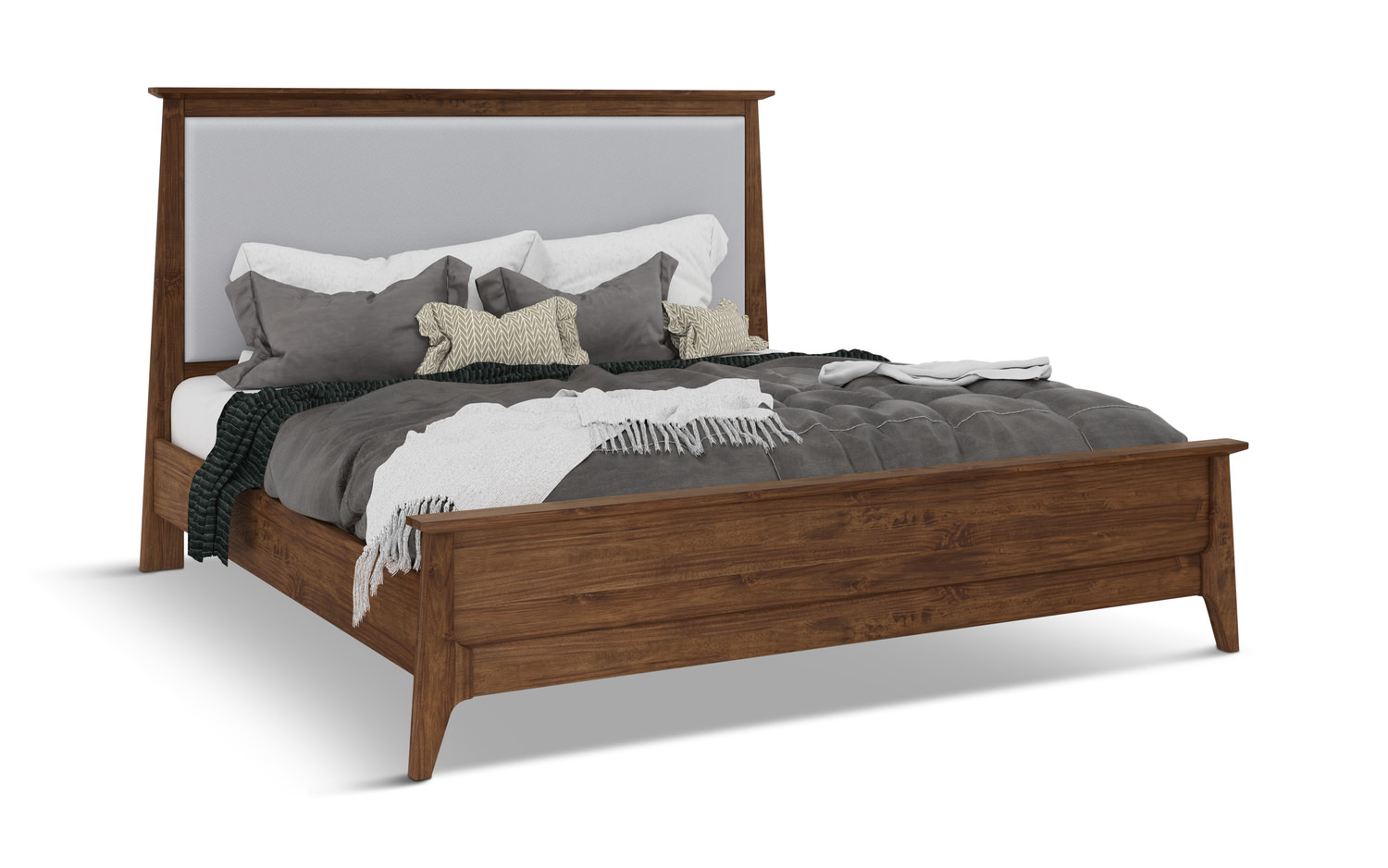Introducing the Bergen Queen Upholstered Bed by HOM Furniture, a stunning addition to your bedroom décor. Crafted from high-quality Acacia wood, this bed features a fabric inlay in the headboard for a touch of elegance. The versatile design allows you to flip the rails to accommodate a slat pack for added support to create a Platform Bed. With its modern style and medium brown finish, the Bergen Queen Upholstered Bed offers both style and functionality. Upgrade to this luxurious panel bed and experience the beauty of Acacia wood in your home.