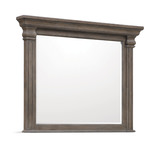The Cascade Mansion King Bed design was inspired from a stately fireplace mantel. It is crafted from flat cut oak solids and veneers and features a bluff grey finish. Soft grey with brown/black undertones add warmth to this larger scale transitional group, with traditional elements. The headboard can be used alone, as a panel bed or with the bench-blanket chest footboard.