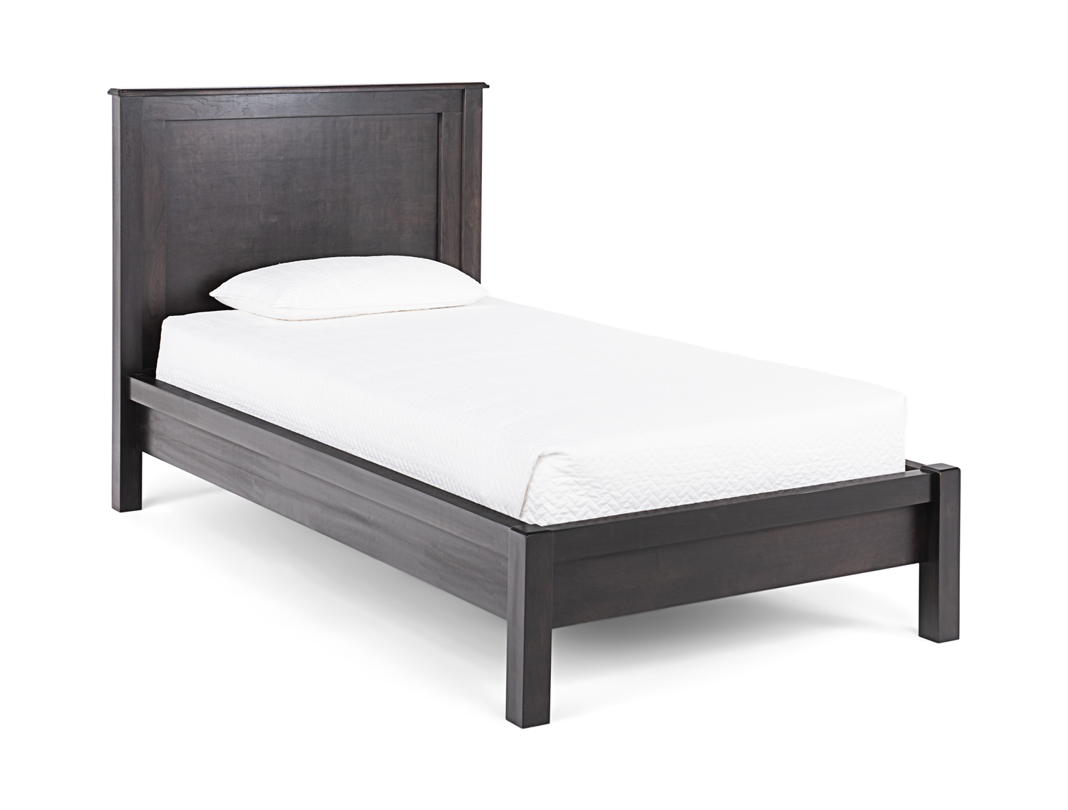 Showcasing simple contemporary lines, the Taylor J Platform Bed creates a peaceful, sophisticated vibe with a low-profile headboard and minimalist platform base. With twelve slats along with center supports, this gorgeous platform bed is designed to securely support a mattress and features a beautiful finish, protected with a 10-step catalyzed lacquer finish to resist heat, water, scratching, and damaging UV light. This beautifully crafted platform bed is made in the USA and includes a headboard, footboard, slat supports, and side rails. This platform bed is sure to add a little extra sophisticated style to your bedroom. Box spring not needed.
