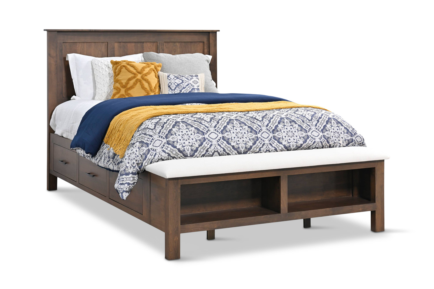 Introducing the Williamsport Storage Bed with Upholstered Footboard, a masterpiece crafted by renowned Amish Craftsmen with a dedication to excellence. Each piece is signed by the craftsman. Made from solid wood, this bed is a true testament to heirloom quality and premium hardwoods, ensuring durability and timeless elegance. This bed is stocked with a luxurious dark finish on solid maple that adds a touch of sophistication to any bedroom. The storage capabilities of this bed provide a practical solution for keeping your space organized and clutter-free. Custom order finishes and wood species allow you to personalize this piece to suit your unique style and preferences, making it a truly one-of-a-kind addition to your home.