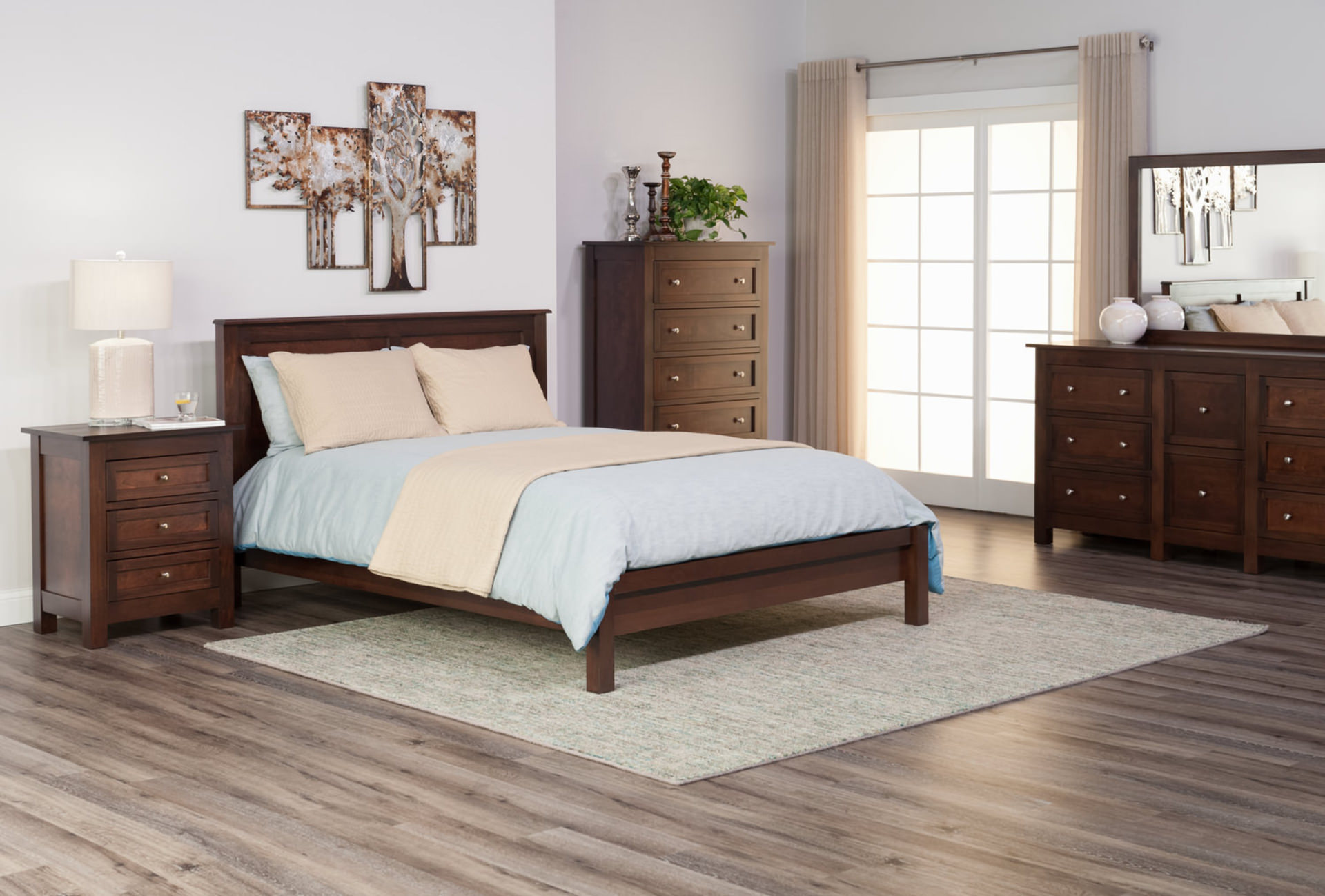 Metals don’t always have to be polished and shiny. The metal look is versatile and can be luxurious, homey or anything in between. A brushed, antiqued or distressed finish, or even a naturally rustic material such as wrought iron, expands the opportunities to mix metals into your interior design. This is especially true in metal furniture or wooden items with metal furniture legs. Coffee tables and sofa tables can show off a bit of the shiny stuff. Metal barstool legs come in all types of finishes. There are metal-legged kitchen tables and trestle dining tables. When pots and pans hang from hooks on a kitchen wall, that’s another version of metallic decor. You can go “all in” with a homespun kitchen by complementing with some metal and wire shelving. Even the bedroom can get in on the act with fancy metal bedframes and metal wall art.
