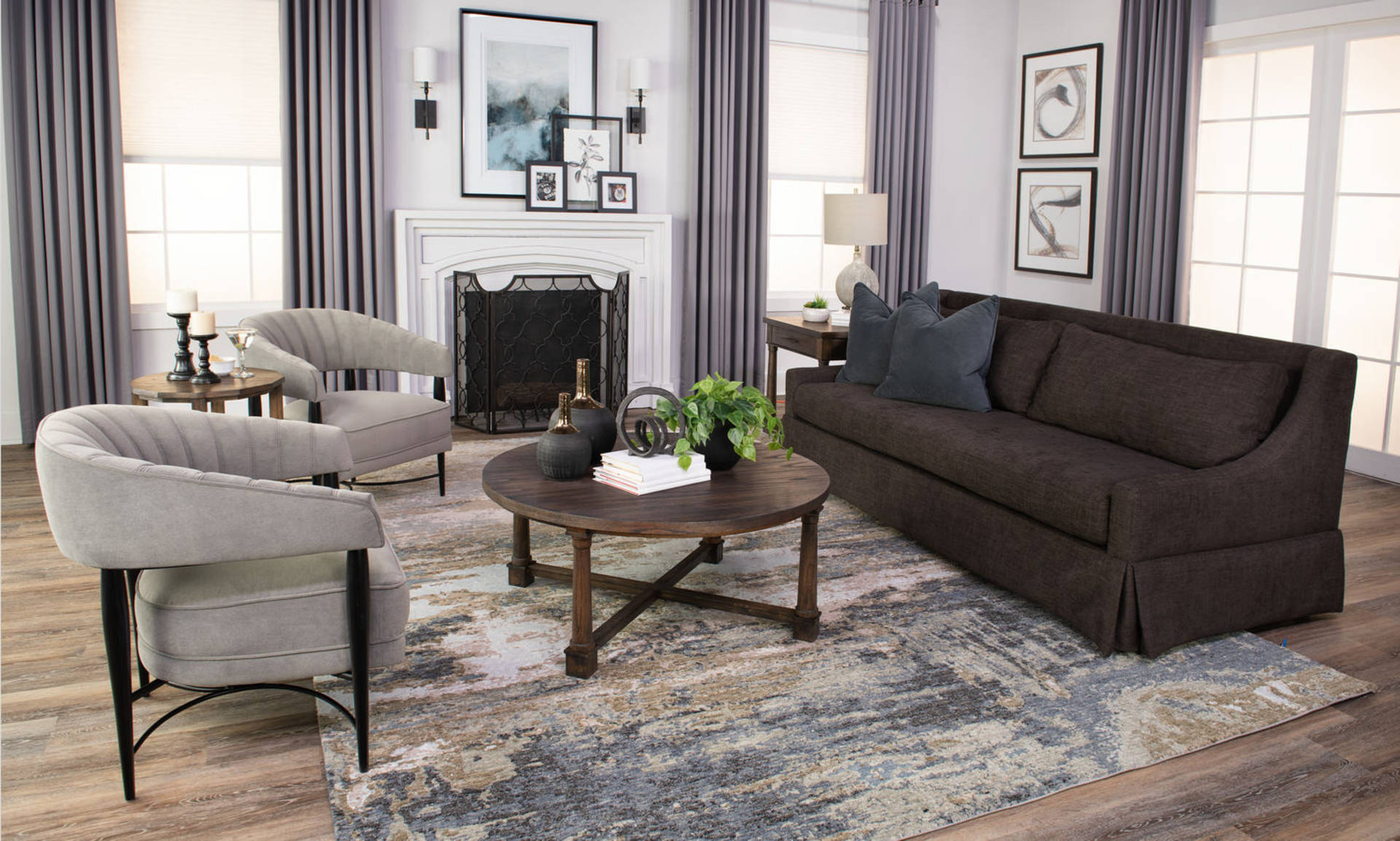 Gold and steel are in the mix along with burl, marble, black onyx and natural stones. Large mirrors add light and accentuate the colors and metallics! Traditional art deco geometrics find a modern place in metallic furniture and light fixtures. Bold patterns in upholstery, rugs and even wall art bring a taste of the Jazz Age to life!
