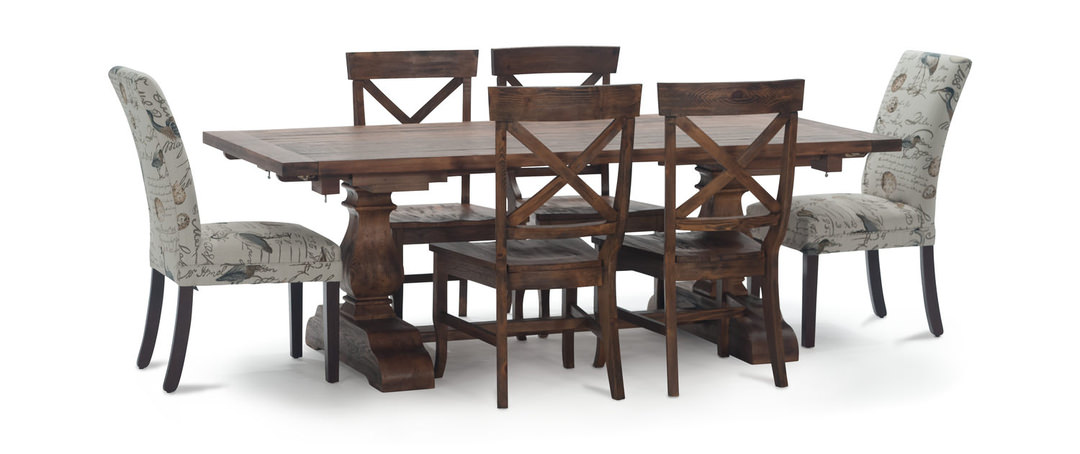 Choose enough dining chairs to seat everyone who dines with you regularly, as well as a couple of guests. A set of host chairs and pairs of complementary side chairs make for an impressive, yet versatile setting. Want more flexible seating options? A bench on one side of the table can save space in your dining room and create extra space for guests. Plus, you can always pull out folding chairs for an extra large crowd.