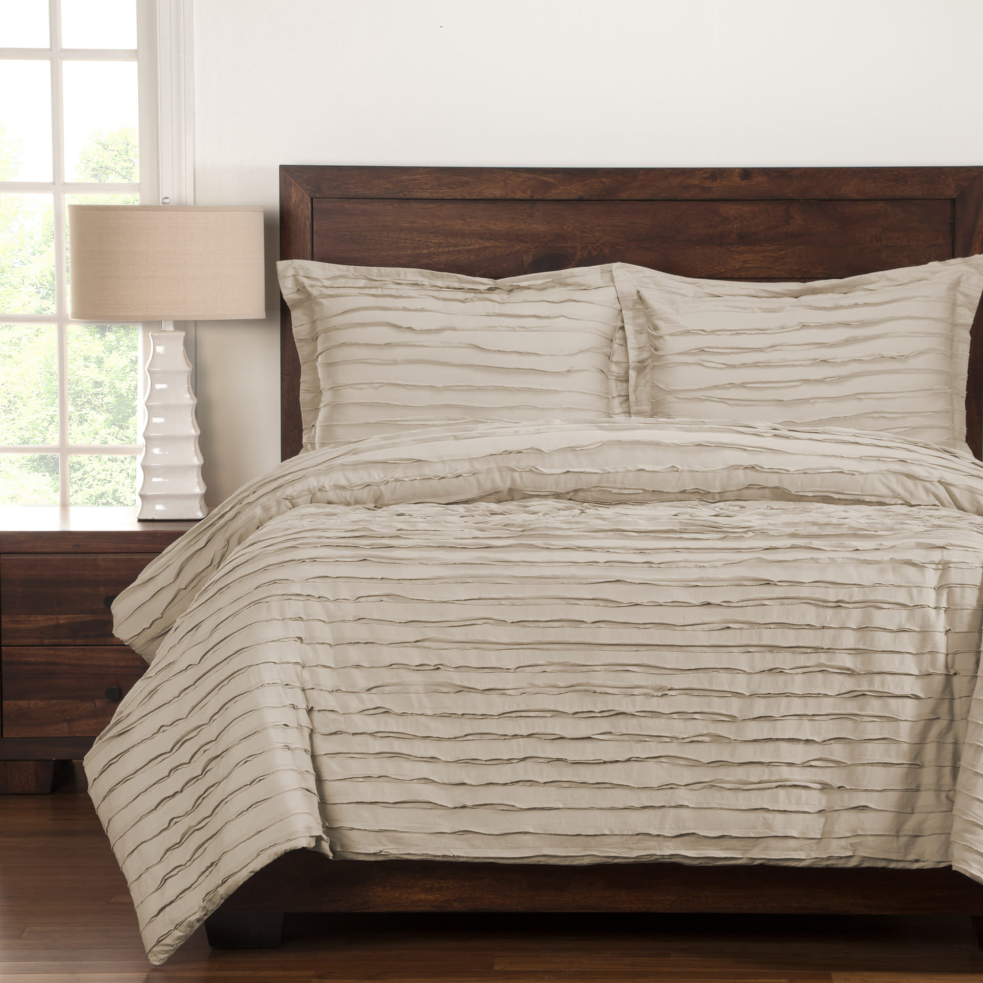 Next, add some bedding to go with that new headboard. If the headboard is a solid color, here’s a chance to introduce some pattern with a duvet. You might choose a fuzzy or fringed bed covering for that touch of interest that texture brings.