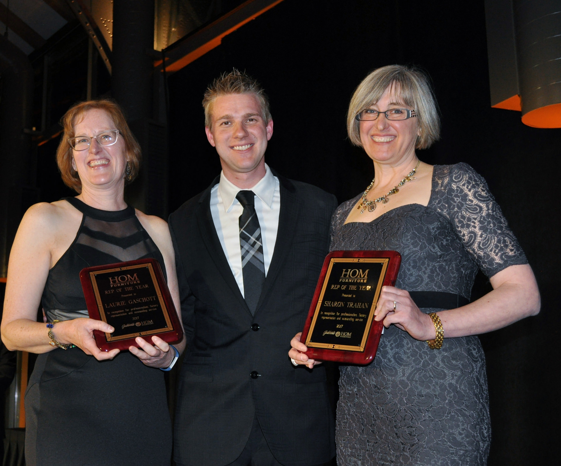Johansen also awarded the company's 2017 Manufacturer's Representative fo the Year award to Sharon Trahan and Laurie Gaschott, sales representatives from Homecrest factory. The honor is based on overall professionalism and timeliness of service, as well as a proven commitment to HOM Furniture's success. "Through the years, Sharon & Laurie have worked diligently on assisting with new product development projects, they have been involved in our HOM Open, and hosted sales departments on many educational trips to Wadena," Johansen said. "They also supported our service and operations teams, and most importantly they always came with home baked cookies. We are proud of their service and commitment to our HOM Team".