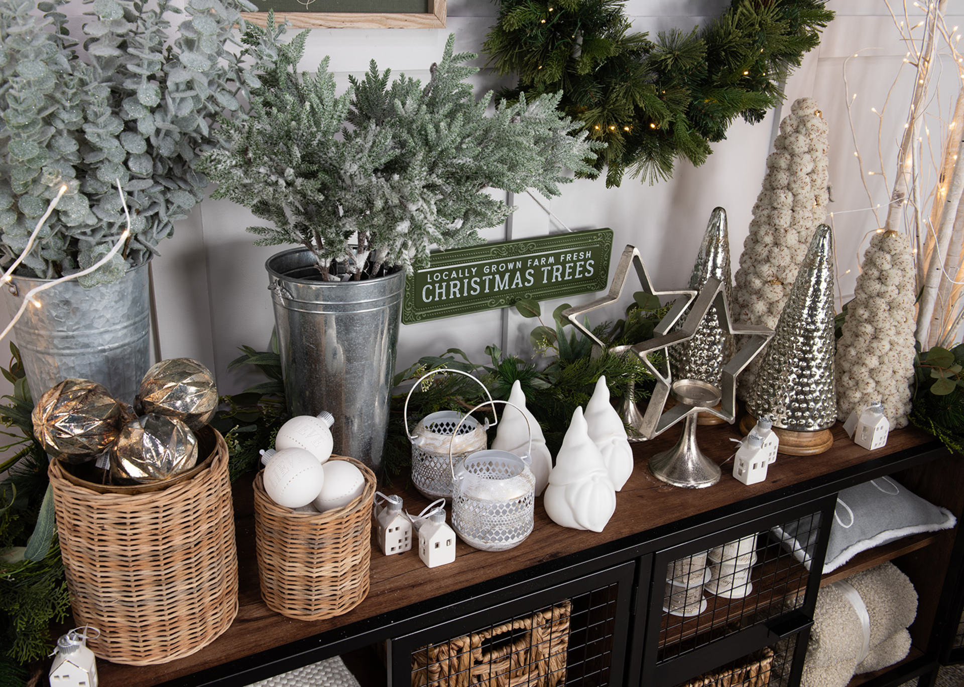 Twinkle Lights: Fairy lights woven through garland or tucked into glass jars bring a soft glow that sets a cozy, festive mood. Choose from power cord or battery operated options.