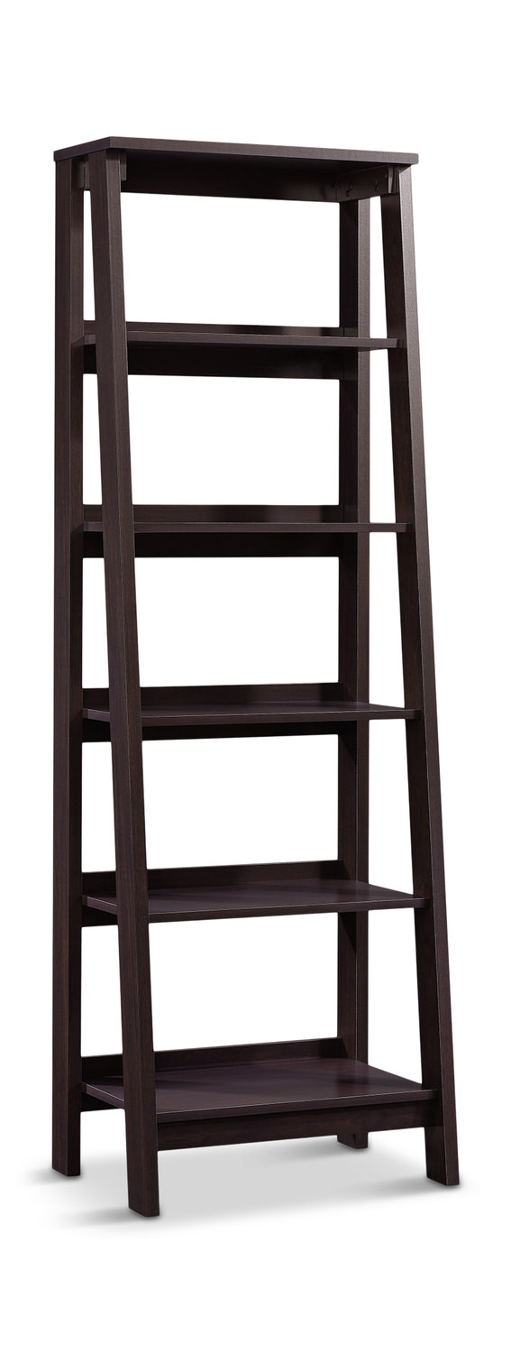 Introducing the Trestle 5 Shelf Bookcase from HOM Furniture, the perfect addition to your home office or living space! This beautifully designed bookcase features a warm brown color, adding a touch of elegance to any room. The versatile design allows for easy placement as it is finished on all sides, so you can showcase your favorite books and decor from any angle. While customer assembly is required, the end result is a sturdy and stylish piece that will enhance your home decor. Upgrade your space with the Trestle 5 Shelf Bookcase and enjoy both functionality and style!