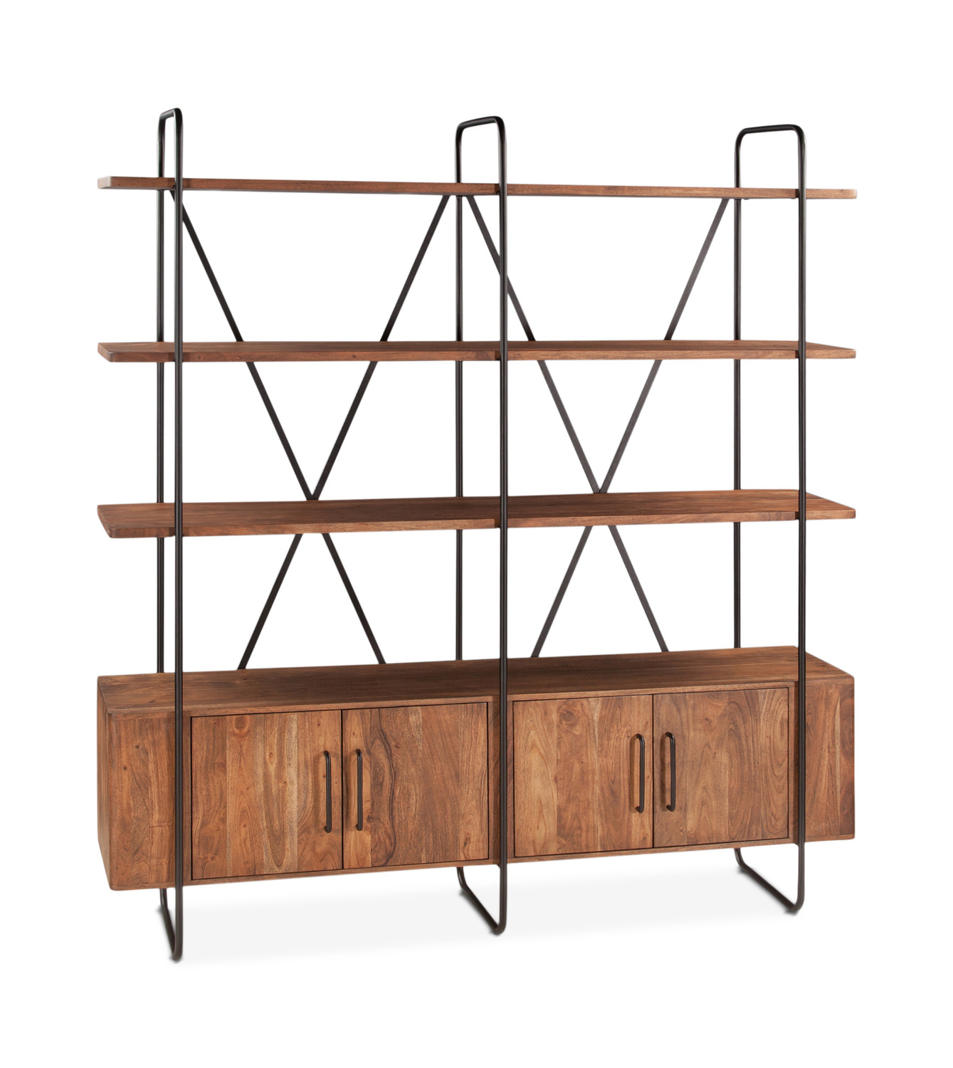 The Verbania 75" Bookcase from HOM Furniture's Uptown collection, where modern meets mid-century charm! This stylish bookcase features a sleek metal frame that perfectly complements the warm tones of the acacia wood shelves and storage cabinet. With a mix of open and closed storage, this piece is both functional and fashionable, providing ample space for all your favorite books and décor. Elevate your living space with the Verbania Bookcase - the perfect blend of contemporary design and timeless appeal.